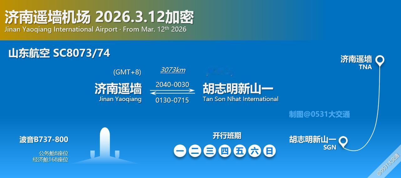 新航季济南机场加密万象/胡志明两条东南亚航线[无辜笑][无辜笑],3.30日起,北部湾航空加密GX8927/28济南遥墙-南宁吴圩-万象瓦岱航线至除周日外每日一班,原每周一三五的航班时刻调整为济南早出港,新增每周二四六的航线基本沿用原时刻[奸笑][奸笑];3.12日起,山东航空SC8073/74济南遥墙-胡志明新山一航线加密至每日一班[惊喜][惊喜]。目前济南机场已挂出的东南亚航线中,新加坡/吉隆坡/河内/胡志明均实现每日1班,万象和曼谷素万纳普航线分别加密至每周6班和5班[可怜][可怜]。曼谷航线没能有daily确实有点少,新德里航线估计今年恢复的可能性很大;柬埔寨作为济南唯一的一个领事馆,济南-金边航线已经中断接近两年了,不知道有没有复航的可能;此外,芽庄、普吉和最近很火的槟城可以期待一下,其他航点目前开航的希望不大[黑线][黑线]