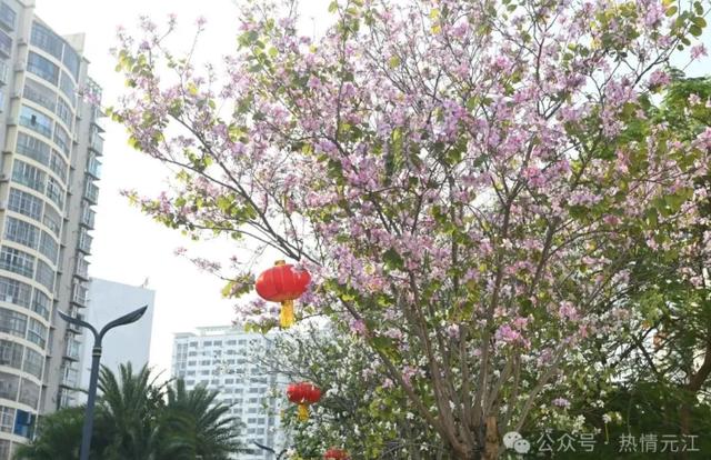 元江县城区的街头同样年味满满,各个主干道、景观区域挂满了灯笼,喜庆的灯笼与盛开的攀枝花相映成趣,吸引不少市民前来打卡。工作人员提前对城区主要街道、公园广场等地点进行装扮,红彤彤的灯笼整齐排列,火红的攀枝花缀满枝头,漫步街头,扑面而来的年味儿让市民、旅居人、游客们纷纷驻足拍照,定格元江独有的新春韵味。