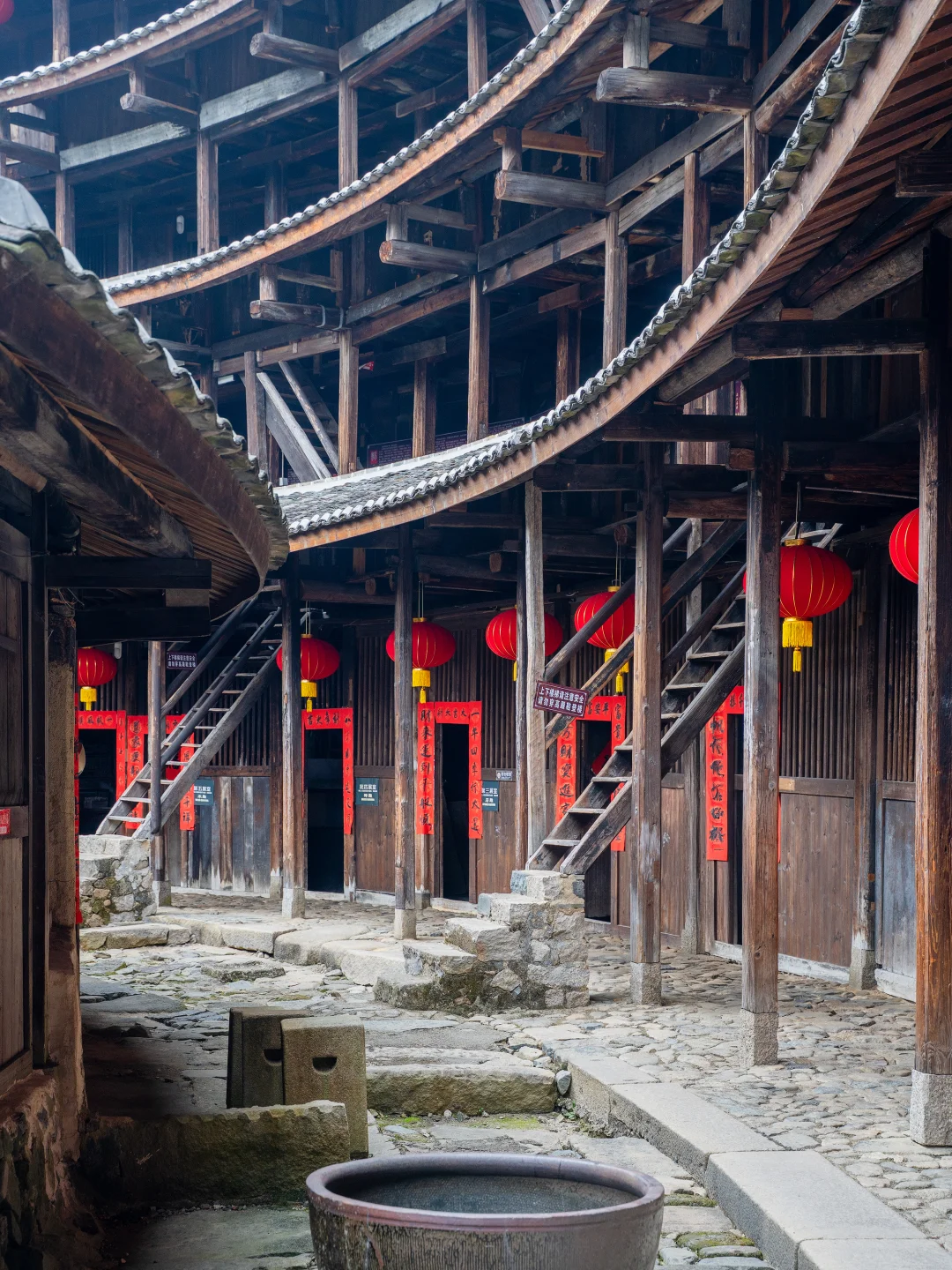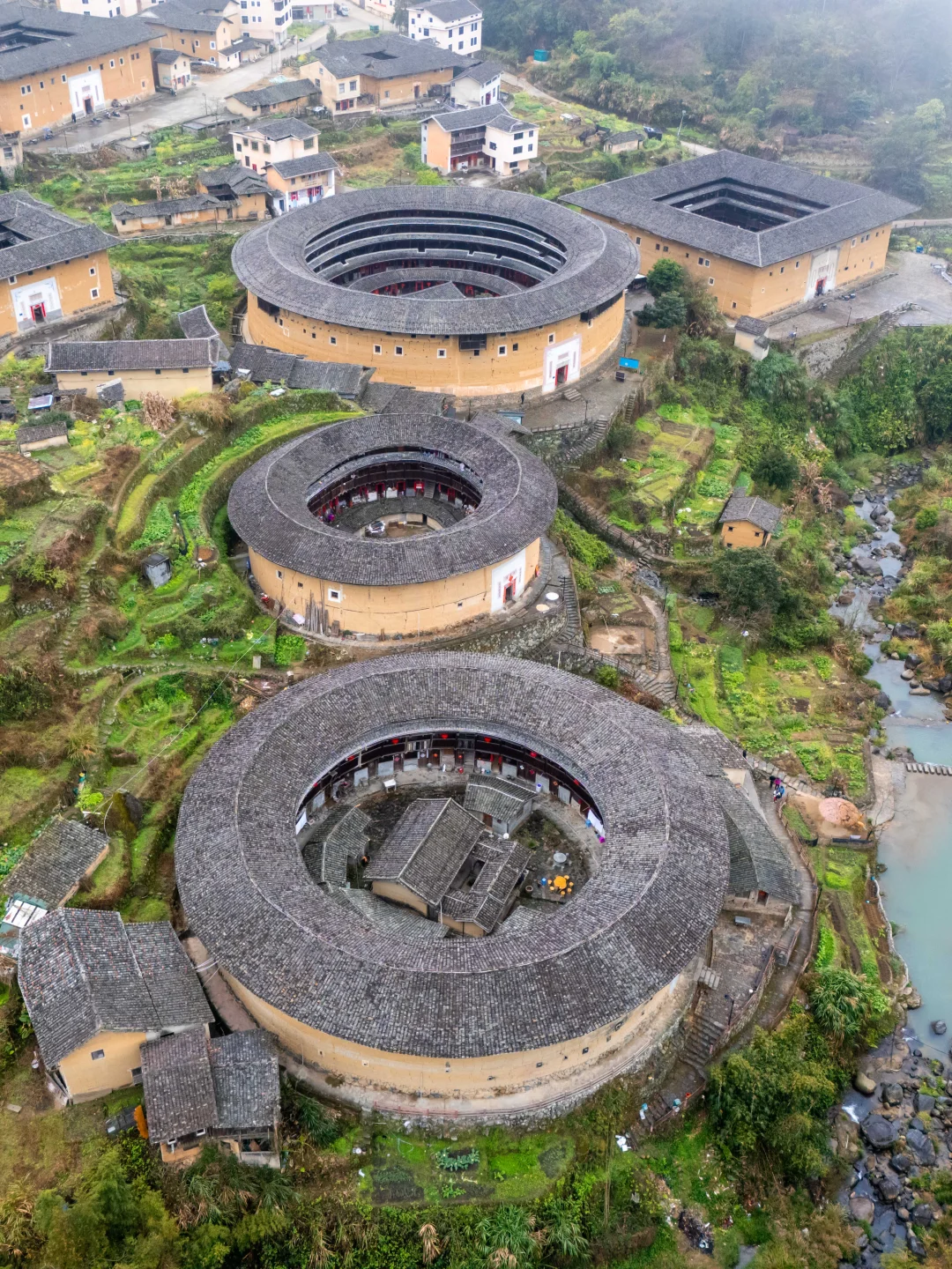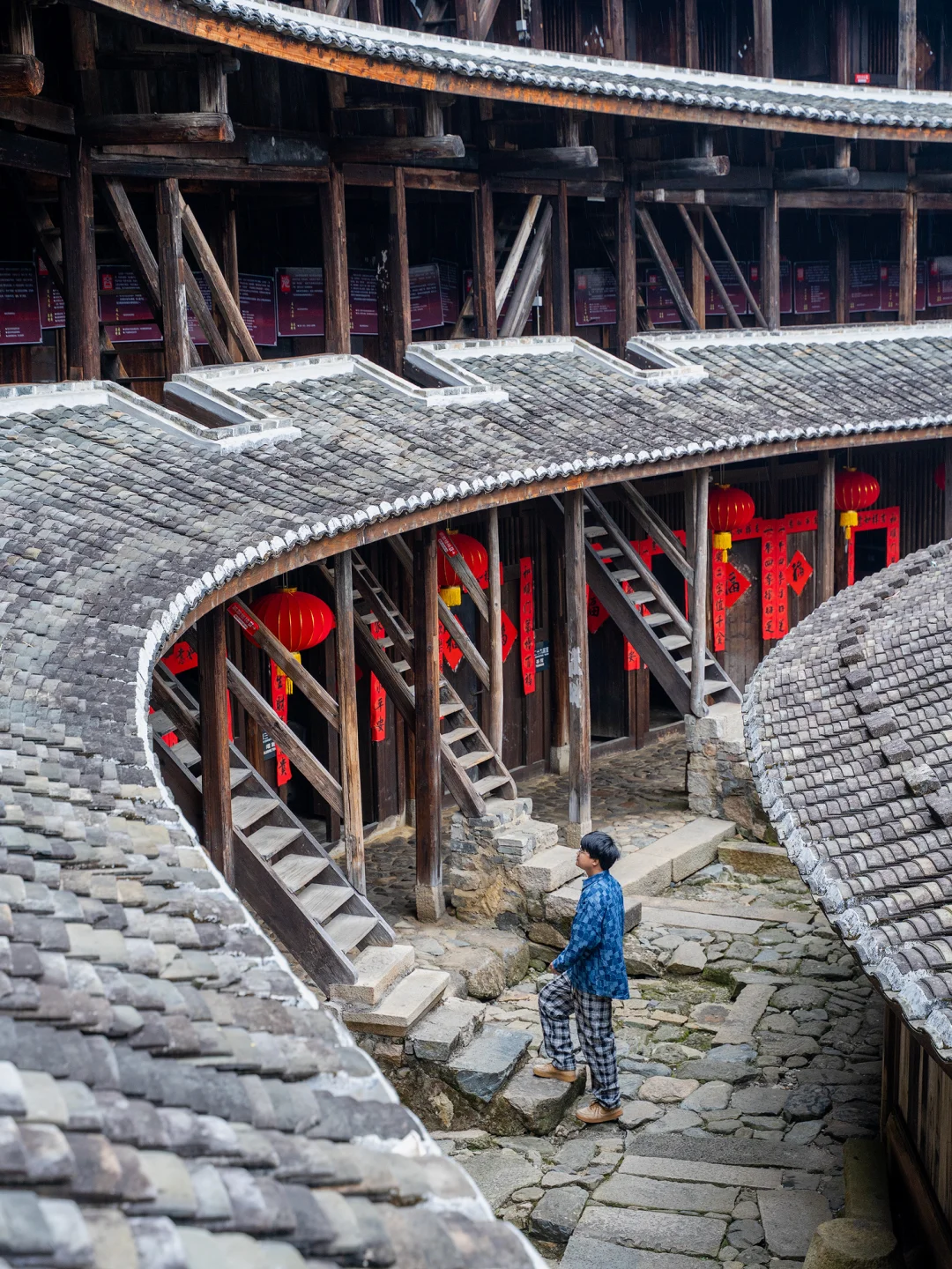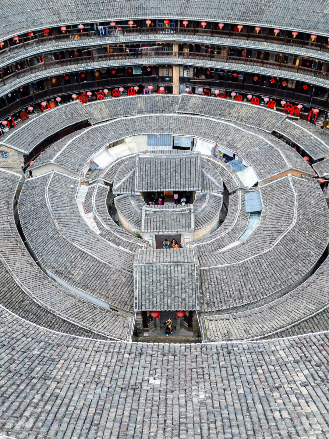福建最圆最大的土楼王承启楼就在这儿。四环相套,四百多间房,像座圆形迷宫
