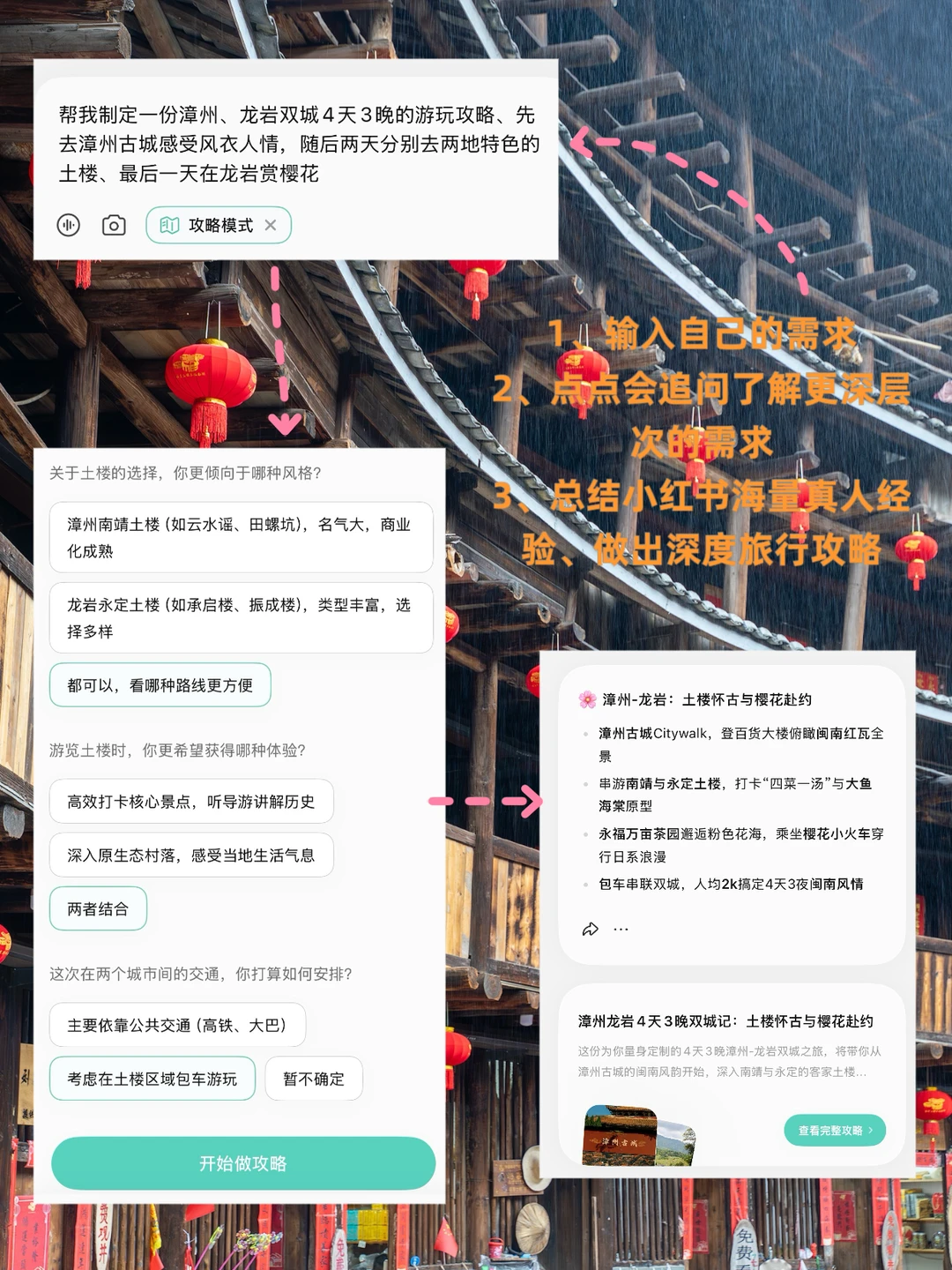 🚶现在出行、我都是用官方ai助手点点、它能够挖掘我的深度需求、然后根据海量的真实分享和经验制定适合我的旅行攻略