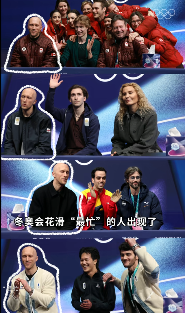 如果本届冬奥会的花滑项目要颁个“劳模奖”,大概率得发给一个人——网友戏称他位“伏地魔”。他不参赛、不打分,却是赛后等分区的固定“嘉宾”:选手一滑完就来这儿等分数,他一转身就换一件国家队外套,接着坐好。