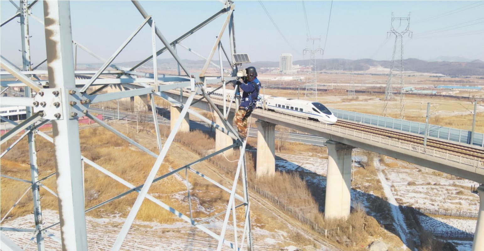 近日,国网本溪供电公司作业人员迎风冒寒,对220千伏抚徐线跨越沈丹高铁区段开展登塔检查作业,细致排查线路安全隐患,全力保障春节期间输电线路安全稳定运行。