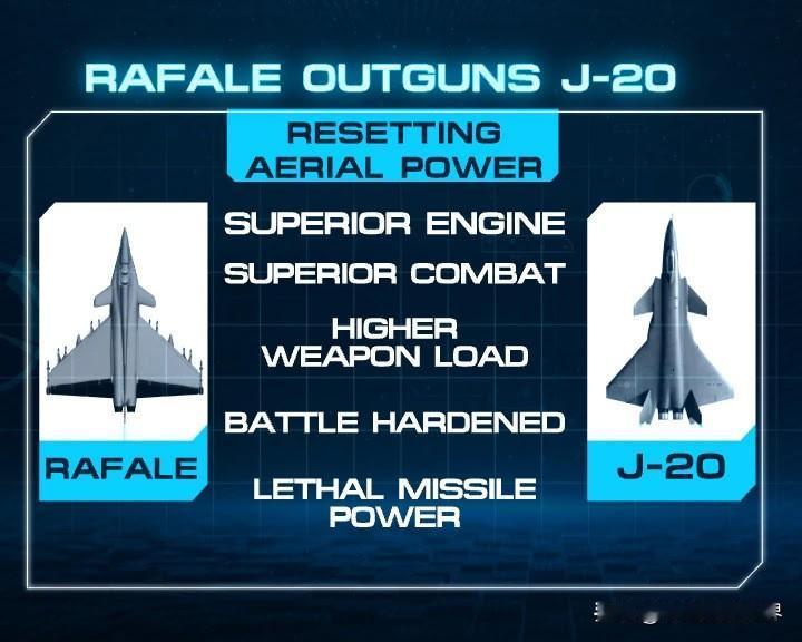 三哥还是那么自信!竟大言不惭地宣称,新买的阵风战斗机目标是J20和J35A。 为了让众人相信阵风比歼20更强大,还特意制作图表进行对比。 他们声称,阵风相较于歼20,具备功率更大的雷达、更优的发动机、更高的载荷以及致命的导弹。 可阵风只是一款勉强算得上中型的战斗机,有何颜面与重型战斗机比拼雷达、发动机和载弹量? 阵风配备的M88 - 2发动机,推力仅7.65吨,属于中推发动机;而歼20搭载的WS - 15,最大推力超18吨,这意味着两台阵风发动机的推力都不及一台涡扇15。 一个是中推,一个是超大推,二者根本不在同一等级。 阵风的机头直径和发动机,天然限制了雷达功率。 这就好比轻中型卡车,即便装载再多,又怎能与重型卡车的载重量相提并论? 至于空空导弹,二者更无比较的必要,就连美国都得往后排。 不得不说,三哥的忘性真大! 5.7空战才过去几个月,三哥就忘得干干净净。
