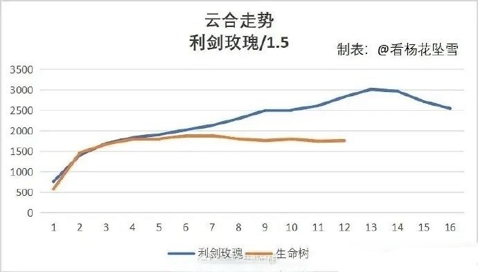 利剑玫瑰和生命树的CVB及云合走势对比。