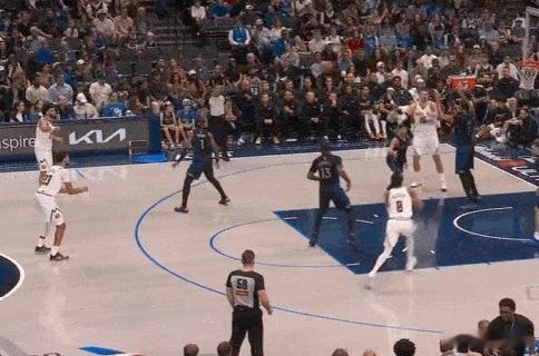 12345约基奇高位做轴,默里无球起手底角上提执行“Chicago Action”,行进间将内姆摆脱在身后,佯装使用“刺探急停”后的撤步中投,吸引其上扑干扰后再迅速衔接向前的二次加速,完全晃飞内姆防守重心后迎着前来协防的西卡抛投命中,打进2+1。