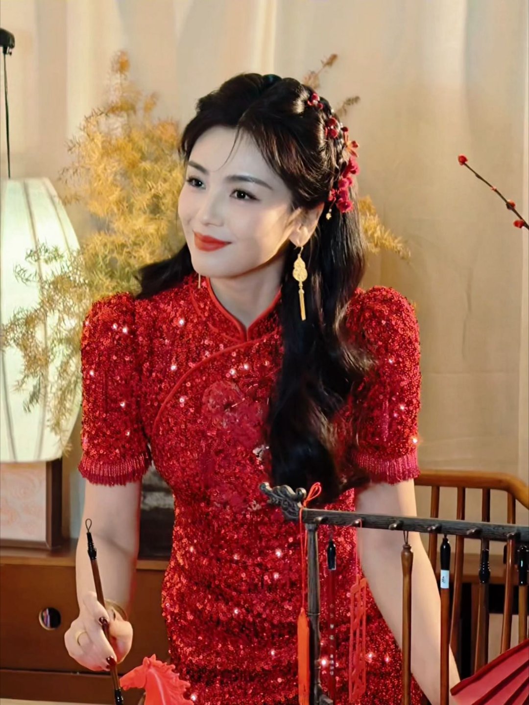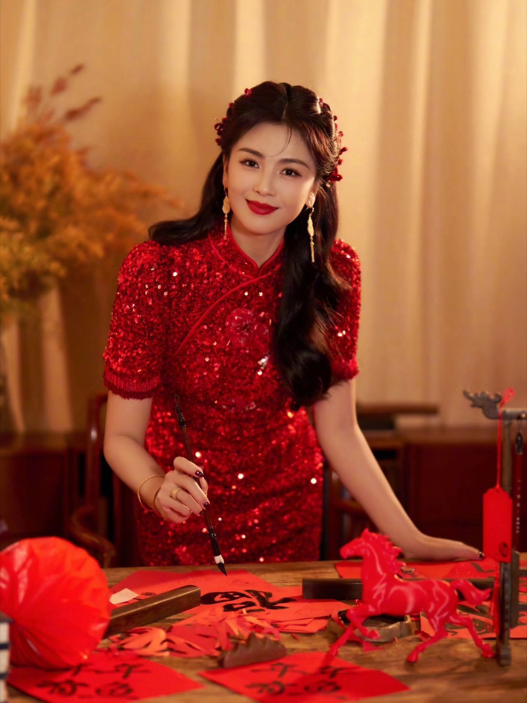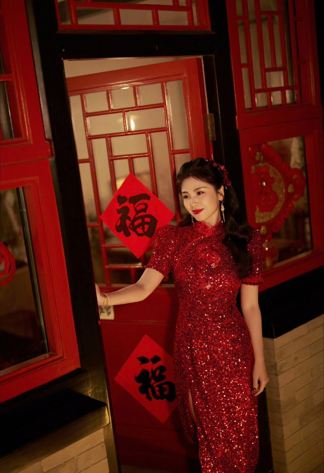 刘涛春晚旗袍造型 刘涛身着M ESSENTIAL石榴垫绣霞光绣布定制旗袍,红韵流光衬得温婉大气,年味拉满,静待她惊艳亮相央视马年春晚春晚新春茶话会。