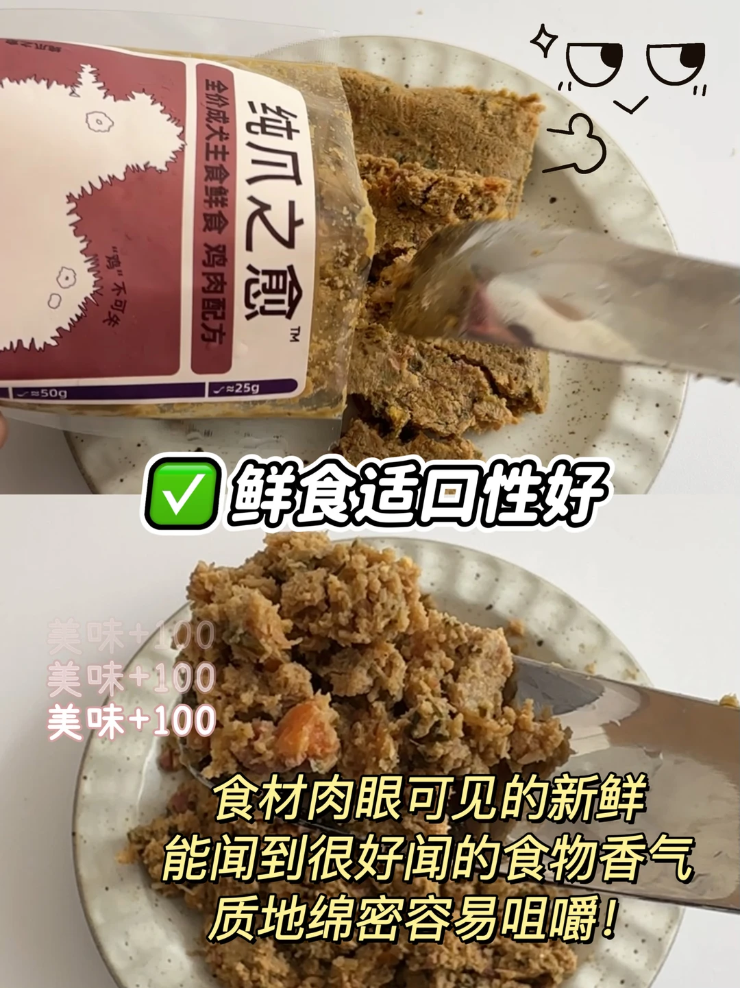 拆开即食超方便,平时放冰箱冷冻保存,吃的时候拿出来放温水解冻两三分钟就好了,真的省心不少💕食材肉眼可见的新鲜,拆开包装就能闻到很好闻的食物香气,质地绵密容易咀嚼,鲜食适口性真的蛮好的,小狗我一整个大满足🤤,开开心心过大年🧧✨