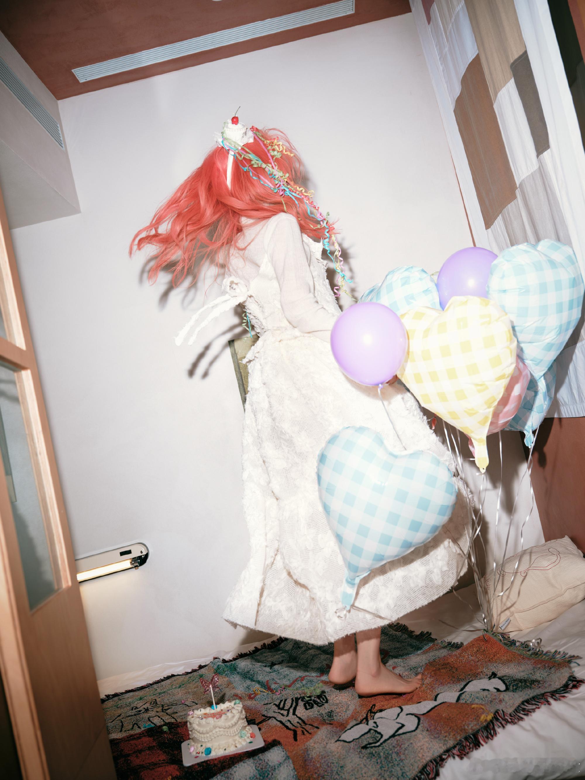 毛晓彤真的染了粉发除夕生日圆梦粉发!毛晓彤粉橘发丝缀丝带,白裙配气球氛围感拉满,嘟嘴托腮甜度爆表,女团封面既视感拉满,这状态太绝了!