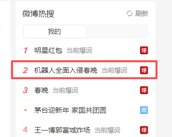 在社交平台上,“机器人全面入侵春晚”的话题也登上热搜榜。