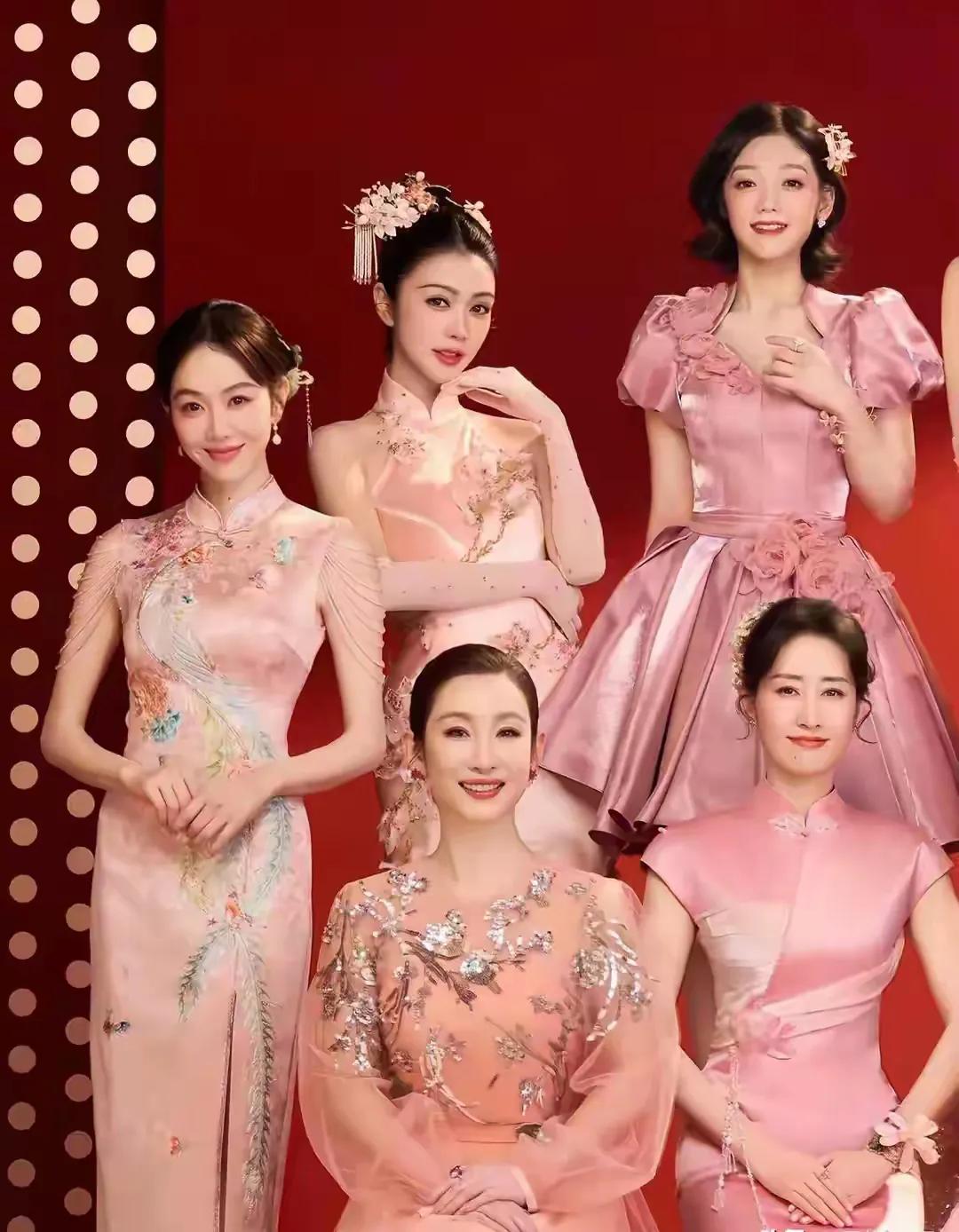 这群女星的平均年龄应该有40岁吧,但是她们把粉色穿出了格调,粉粉嫩嫩,好美,好知性,好优雅。 周慧敏与梁咏琪、薛凯琪、刘惜君、希林娜依·高、张钧甯、姜妍、刘敏涛、热依扎、秦海璐等女星同台合唱《立春》。 不管歌曲好不好听,这几位也太美了。 作为开场,几位算是惊艳了。 一个好的开始,精彩节目不断。 除了不老女神周慧敏以外,梁咏琪、秦海璐、刘敏涛也够漂亮,气质满满。 看了几位的表演,感觉粉色不再是少女的专利,中年年也可以尝试,可以更美。 不同的粉色,不同的款式,适合不同的女星,那么和谐。 粉色虽不沉稳,也不优雅,但是很温馨。 中年人敢尝试粉色吗? 你们最喜欢谁的裙子?