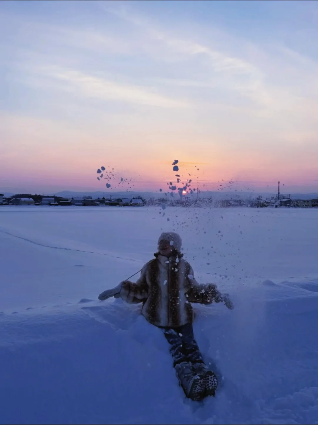 在雪地里看夕阳,还是头一次,这样美的黄昏,就像夕阳写给雪的情书,昨天和朋友看到时,都很惊喜,她说我给你拍几张照片,但光照可能只有五分钟哦,不知道能不能拍到?结果很惊喜~