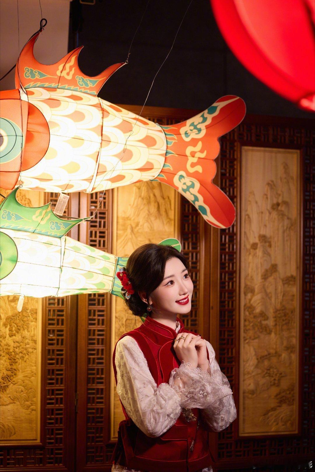 毛晓彤生日过年一起快乐春晚 最美除夕寿星毛晓彤!红金新中式马甲搭白纱,精致又灵动