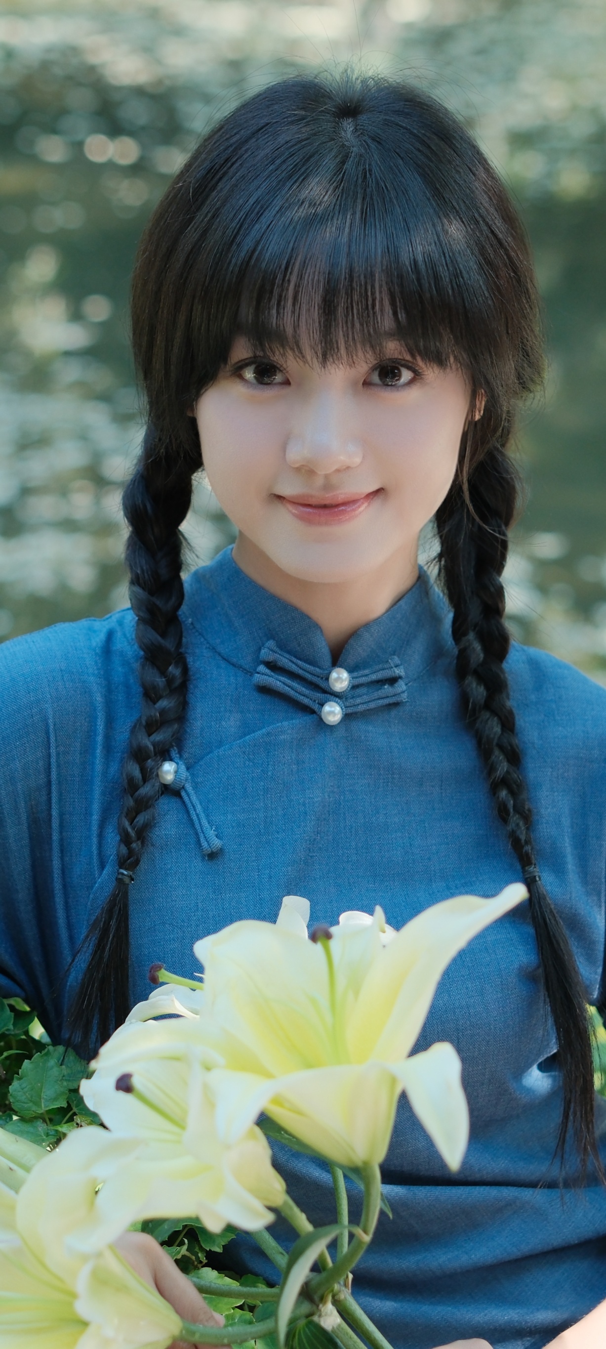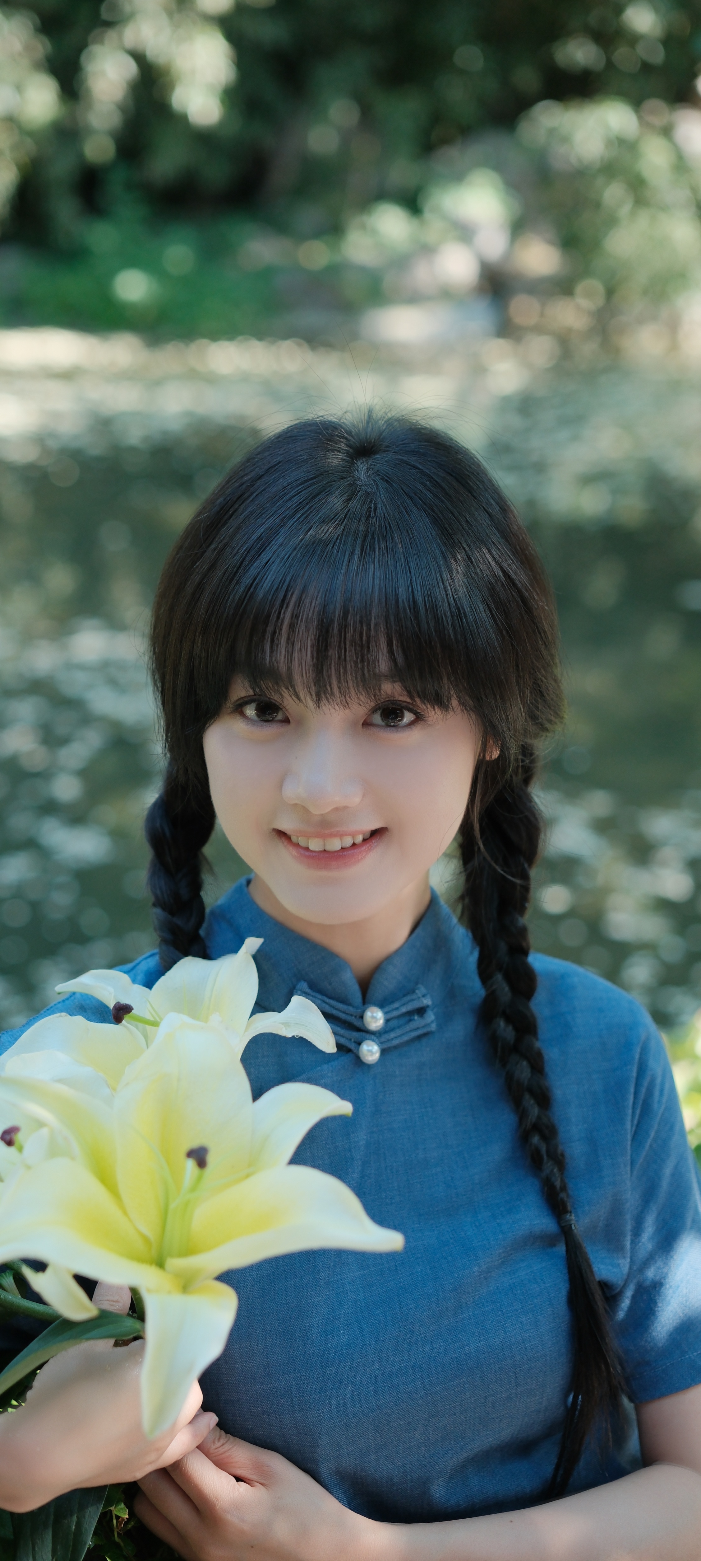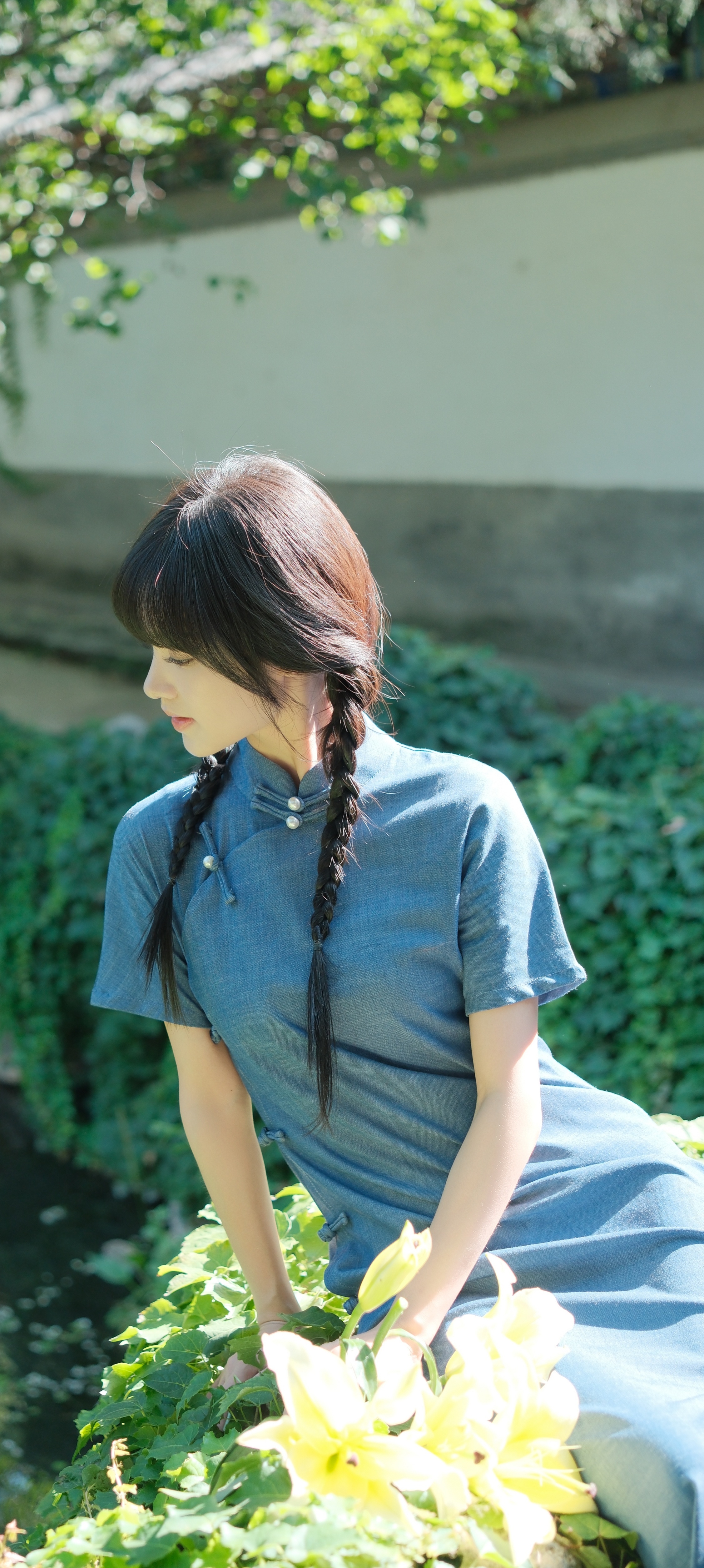 姜之南纯美穿搭壁纸:青春的味道,是民初麻花少女感。姜之南