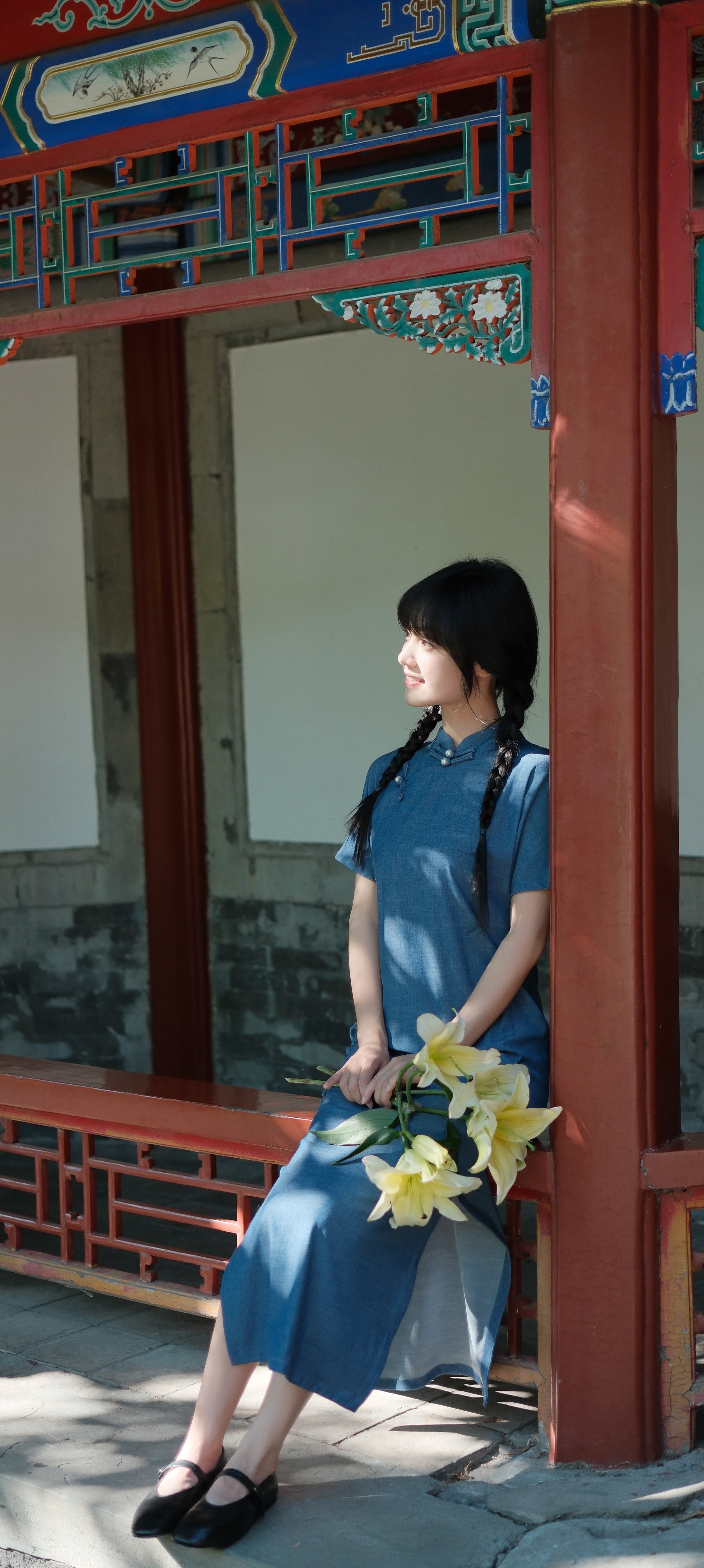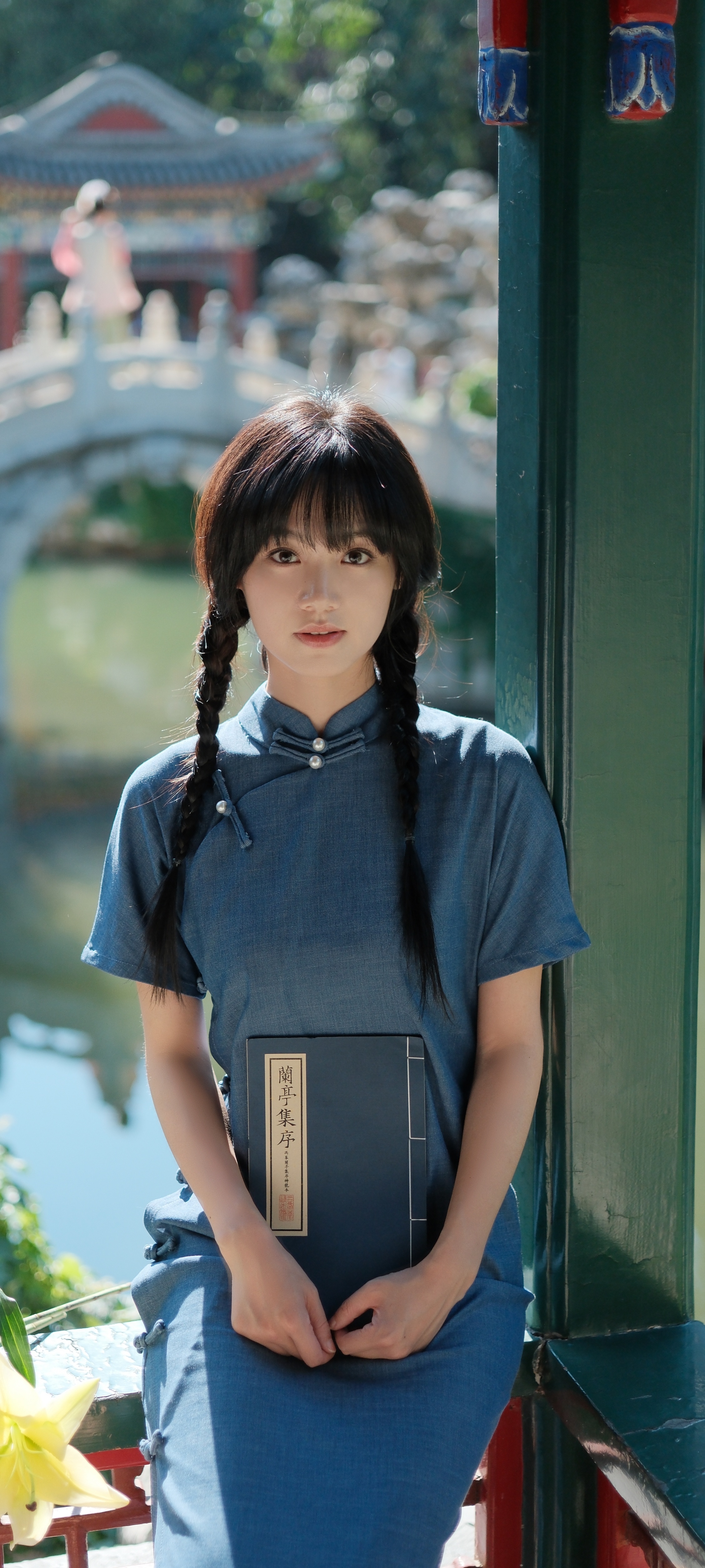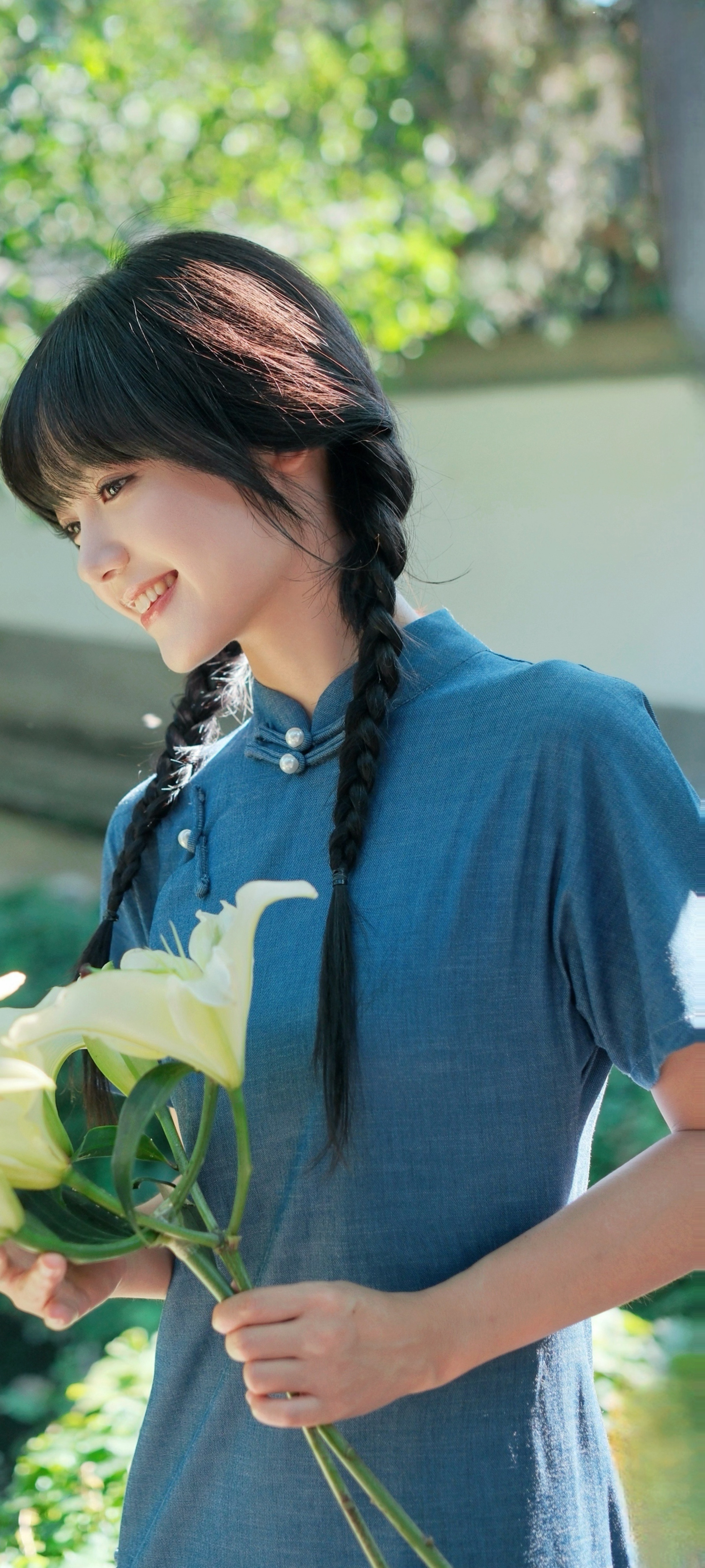 姜之南纯美穿搭壁纸:青春的味道,是民初麻花少女感。姜之南