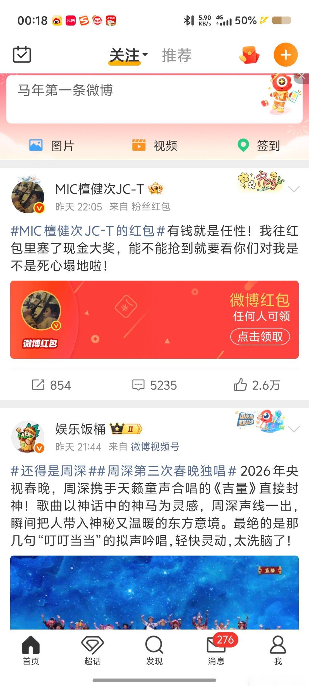 我真是服了,看看现在几点了,檀健次两小时前发的红包,🌊现在才让我刷到