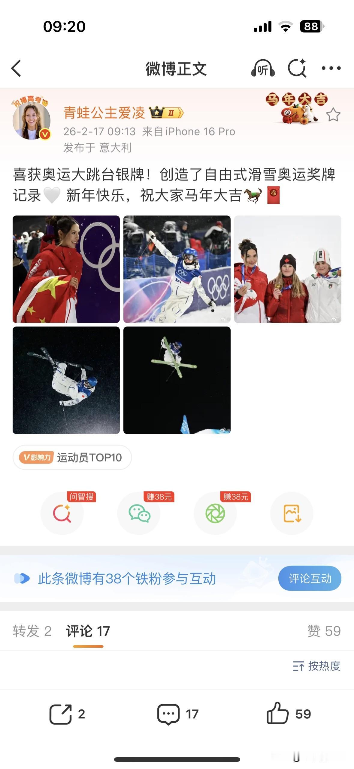2月17日凌晨,米兰冬奥会自由式滑雪女子大跳台决赛,谷爱凌稳稳拿下银牌🥈! 不是主项、四年没比、大雪天气、第二跳还失误,她依旧逆风翻盘拿下奖牌,这份实力真的太顶了! 她真的太优秀了! 赛前就说不会做太冒险的动作,兼项本来就要有所取舍,能拿到银牌已经超级厉害了!动作观赏性、滞空感都绝了~ 公主太棒了!同为女生真的超级骄傲! 健健康康拿下奖牌,真的太值得庆祝啦🥹💛
