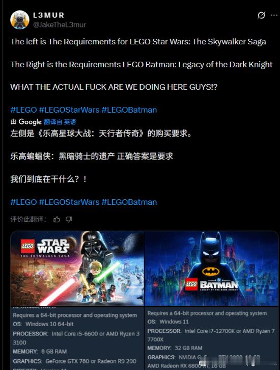 《乐高蝙蝠侠:黑暗骑士遗产》下调PC配置需求当《乐高蝙蝠侠:黑暗骑士遗产》公布PC配置需求时,不少玩家都感到意外——这款开放世界动作游戏的推荐配置竟然需要高达32GB内存。不过如今情况已经改变。随着2026年由AI浪潮引发的“内存荒”愈演愈烈,开发团队已将推荐内存需求直接砍半。据悉,1月17日首次曝光时,《乐高蝙蝠侠》的配置需求就引发热议。玩家很快将其与2022年的《乐高星球大战:天行者传奇》作对比——后者推荐内存仅为8GB。而短短几年间,TT Games的新作推荐内存却翻了四倍。这也立刻被质疑为PC游戏“优化不足”的又一案例。对此,工作室当时回应称游戏仍在持续优化,但为了能够在Steam页面上线、开启预购和愿望单功能,必须先提交一份硬件配置表。如今看来,TT Games当时的预估显得相对保守,后续优化带来了明显改善。玩家只需16GB内存也能顺利游玩。开发商在2月14日的最新公告写道:“在对《乐高蝙蝠侠:黑暗骑士遗产》PC版本进行持续测试的过程中,我们已将推荐硬件配置中的内存要求从32GB下调至16GB。需要注意的是,目前公布的PC配置仍非最终版本,我们将在临近发售前继续进行优化和改进。”将于5月27日发售的《007初露锋芒》此前也经历了类似情况。该作最初同样推荐32GB内存,之后又调整为16GB,显存(VRAM)需求也有所降低。IO Interactive方面将这一变动归因于“沟通失误”。如果从玩家角度来看,这种调整意义不小。假设某位玩家原本只有16GB内存,看到最初公布的配置后可能计划升级。但如果在去年秋天购买内存条,像热门的Corsair Vengeance LPX 16GB(2×8GB)DDR4-3200内存套装售价仅为80美元;如今同款产品价格已翻倍至160美元,而且还经常缺货。