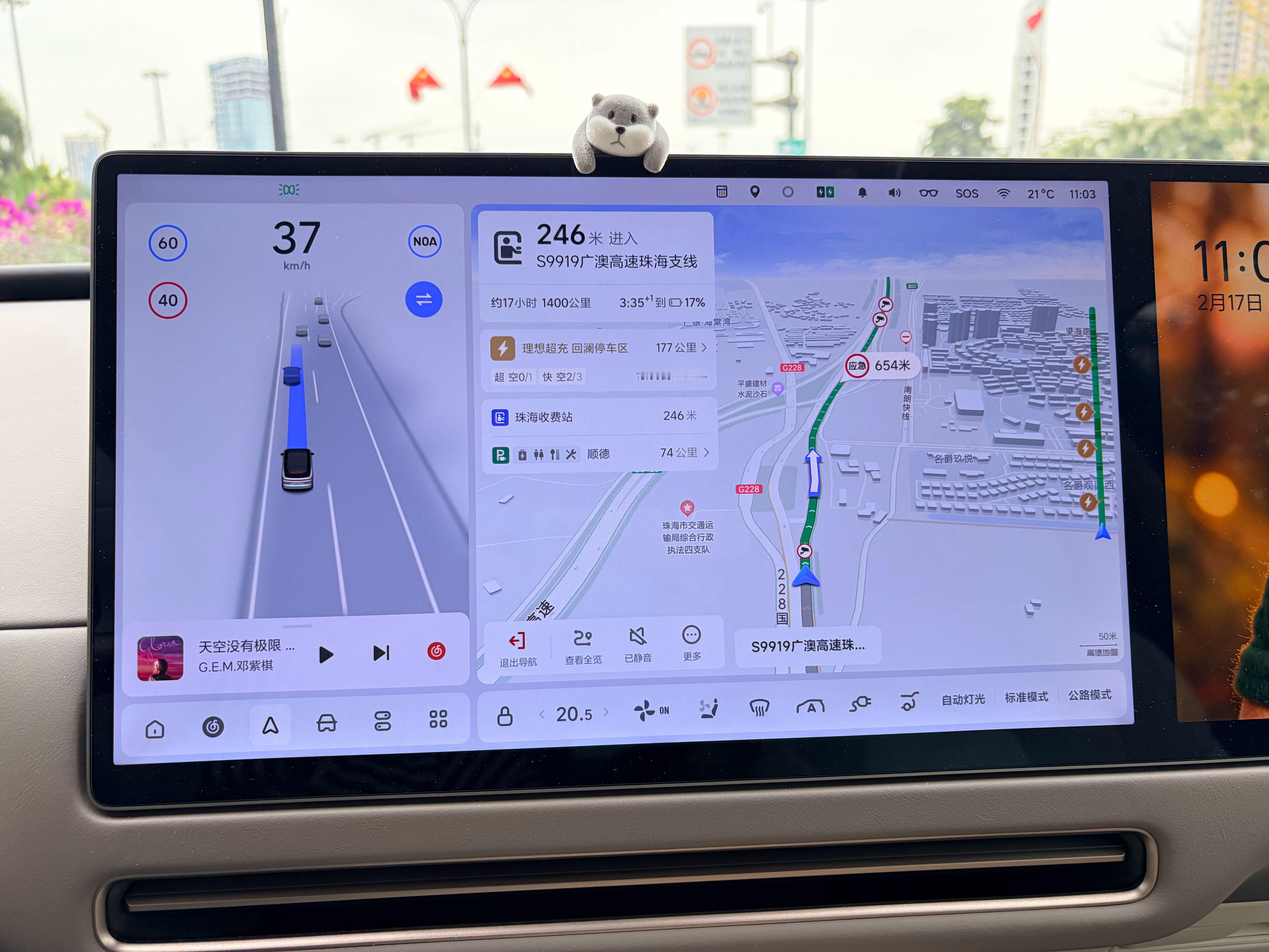 出发电量 320km, 冰箱加热(没吃完的早茶),彩电空调常开,准备高速服务区过夜了。