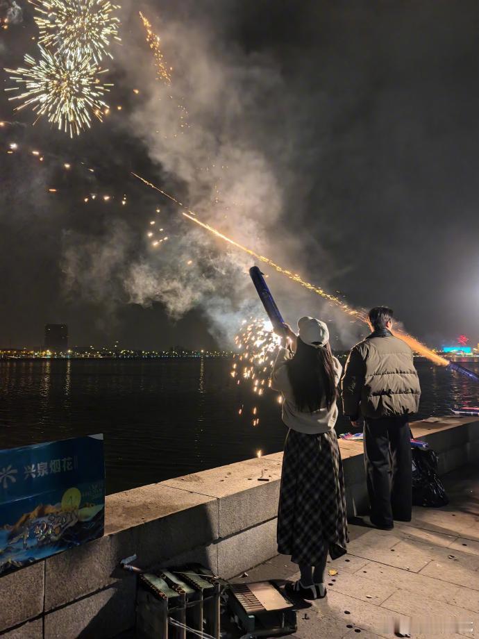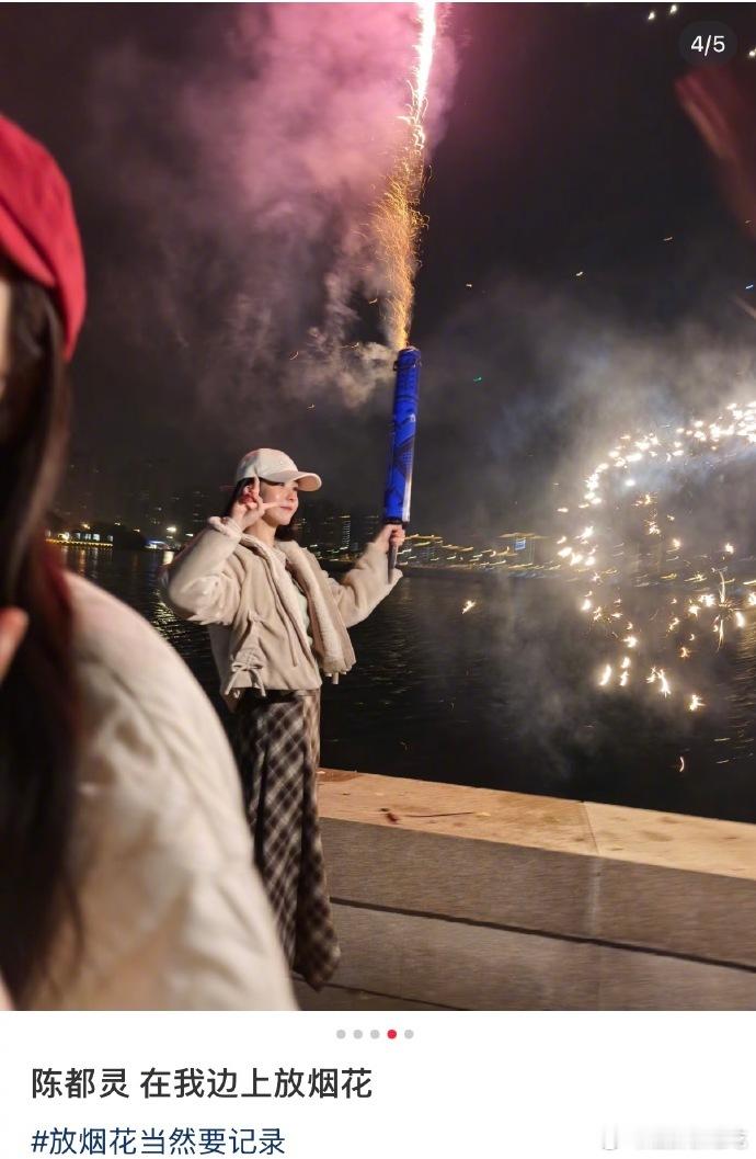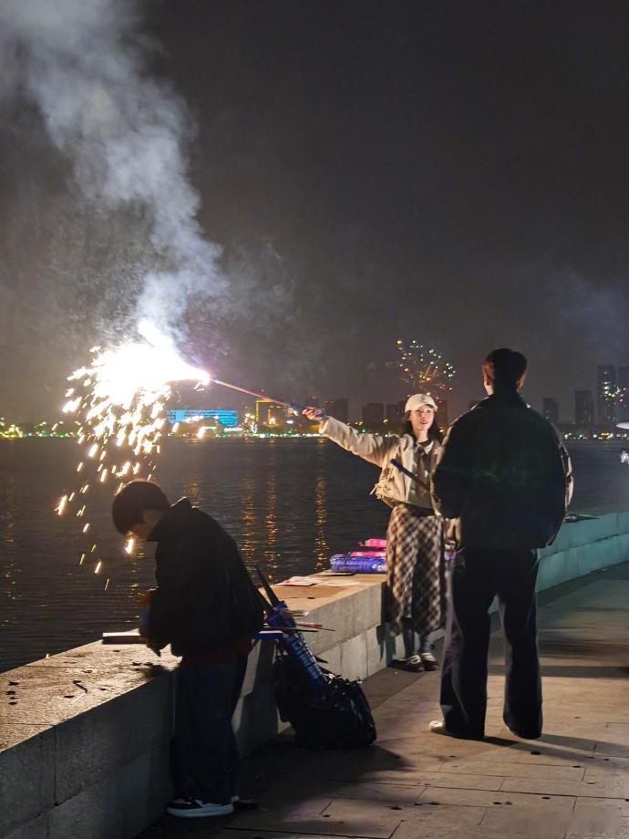 网友昨天偶遇陈都灵放烟花了,还放了一个多小时