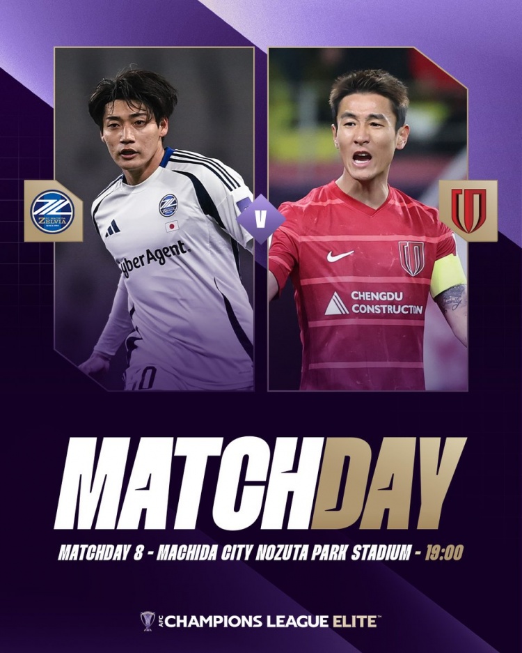 压力山大,町田泽维亚将在主场迎来成都蓉城,对于后者而言若想晋级淘汰赛阶段,本场比赛必须取胜。