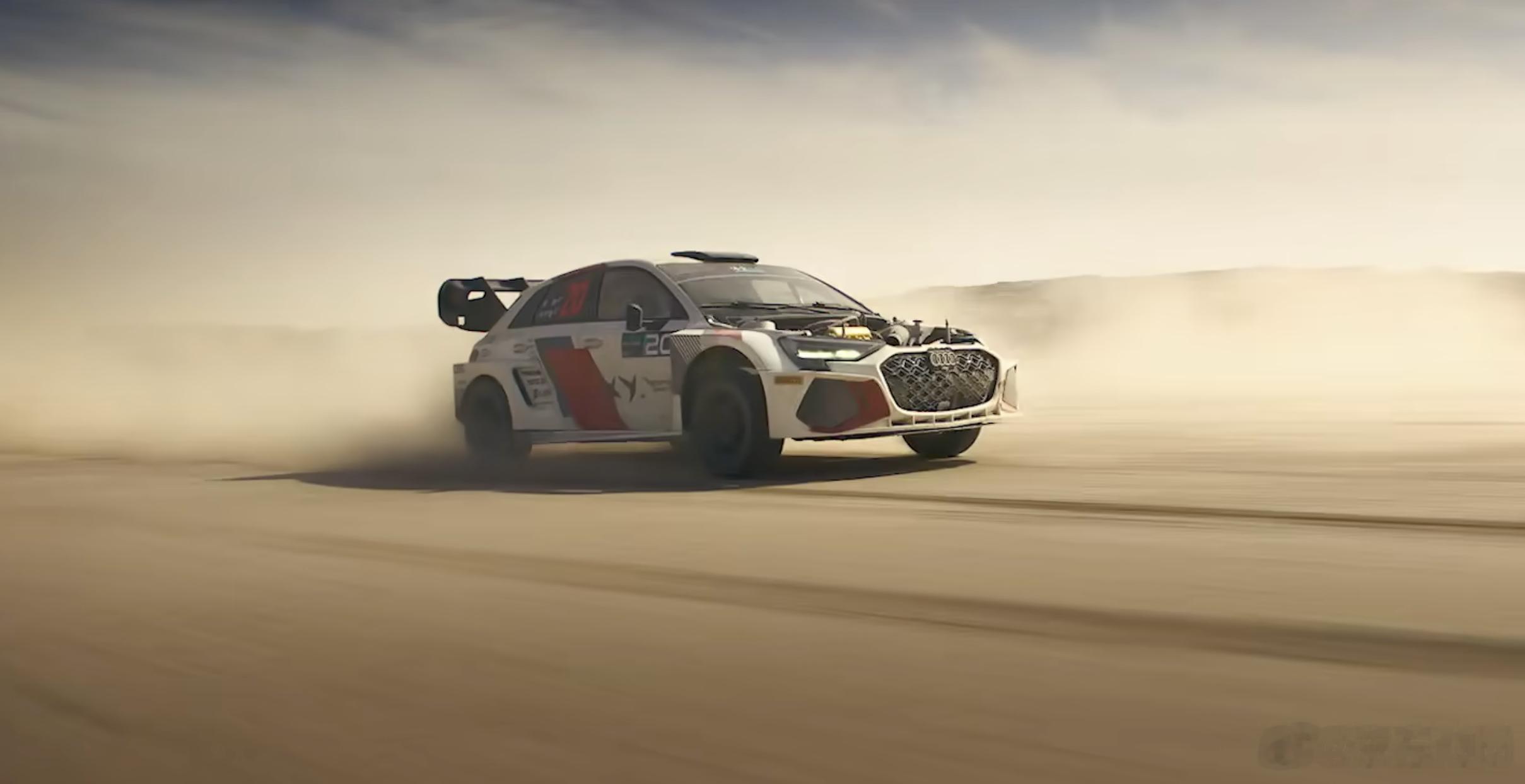 最后冲线前,在前机盖飞掉,转向助力失效,四驱拉力赛车将动力分配手动调整到车头还保持速度是艺术处理。