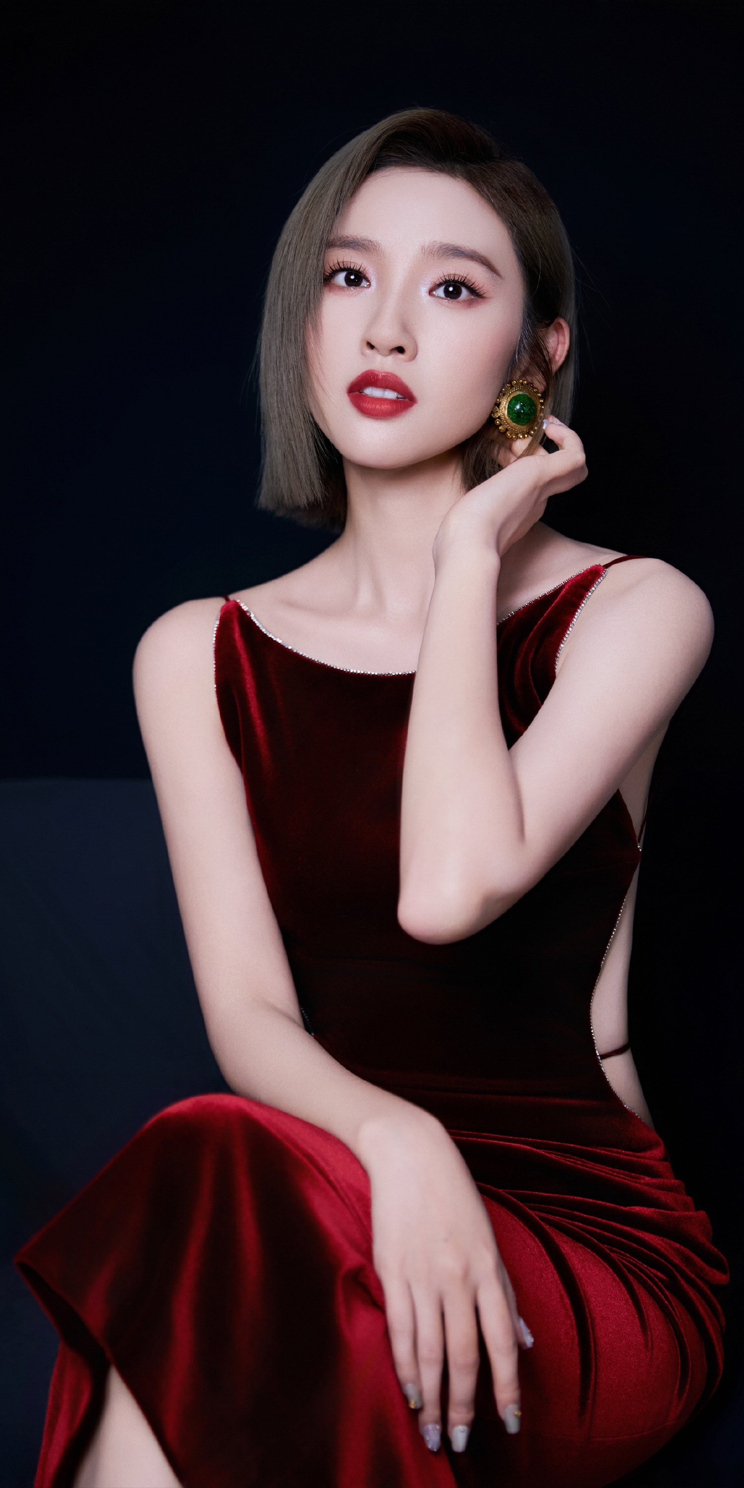 唐艺昕半熟恋人:眸光如星,酒红魅影