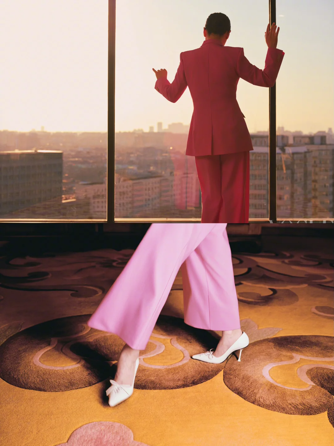 📸 在这组照片中,赵涛发挥自己女演员的魅力,一身粉色西装,展示独特魅力。
