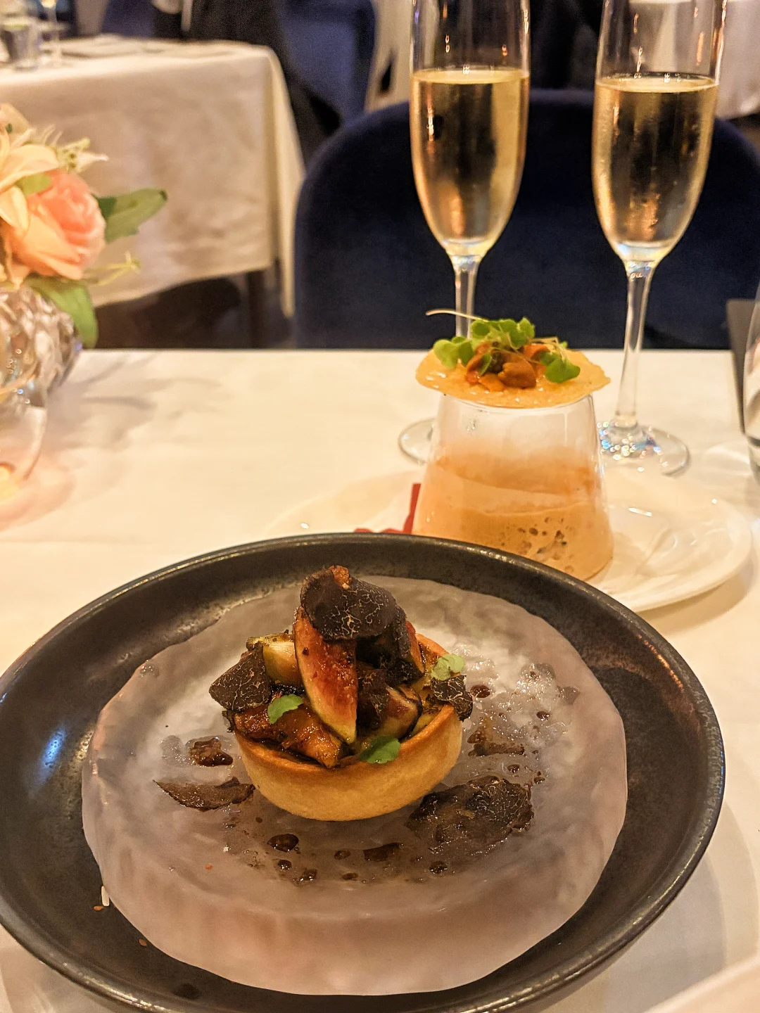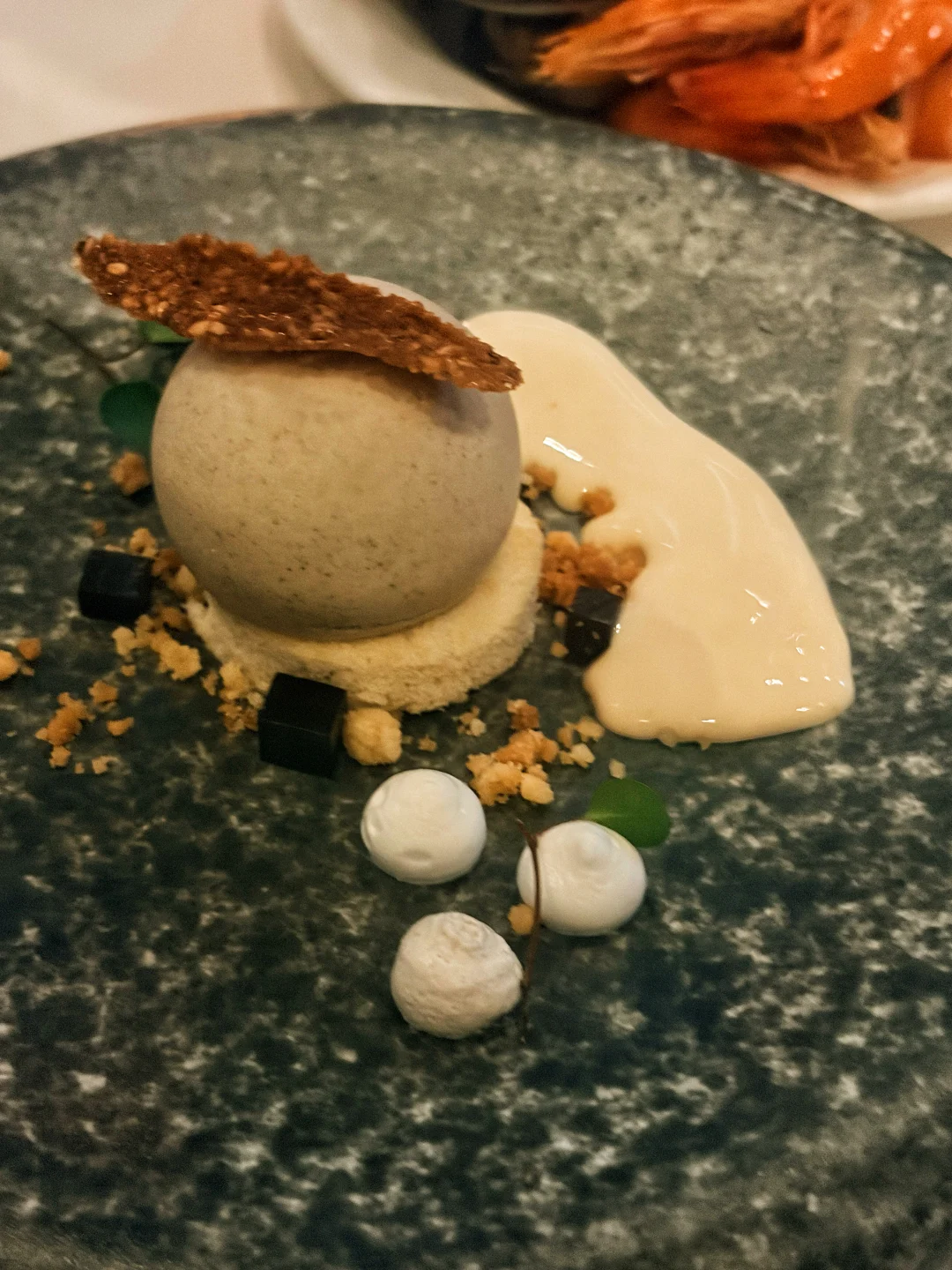 芝士挞温热绵密,黑松露香气浓郁,甜酸汁刚好解腻。
