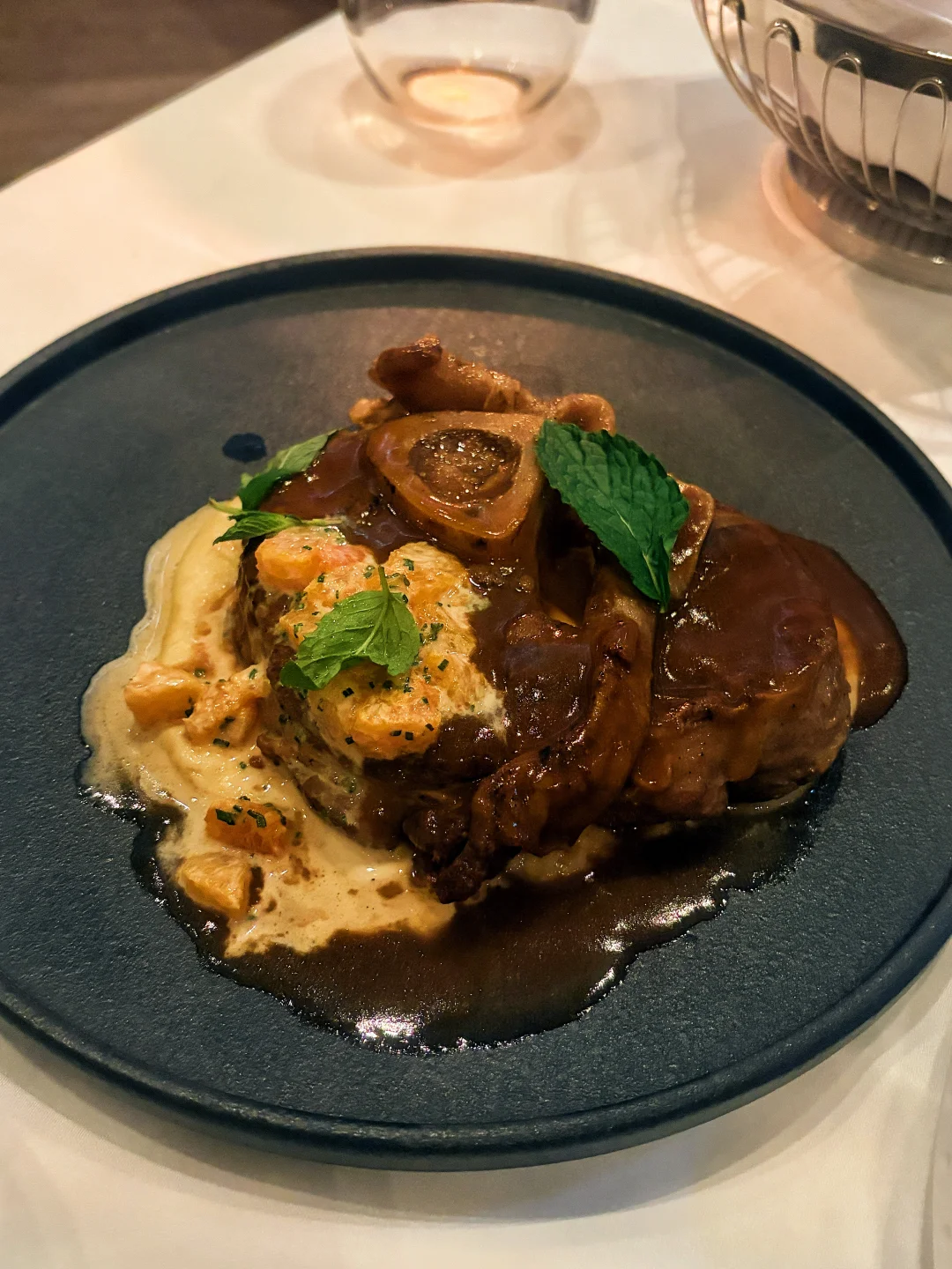 和牛的油脂分布均匀,入口即化,菊芋松露蓉的香气直接把整道菜的质感拉满!