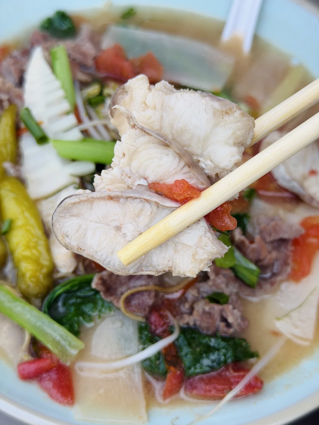 记得加一勺北海特色蒜蓉辣椒酱,咸甜提鲜,泡椒是点睛之笔,怕辣的也能放心加🌿还有柠檬叶➕➕➕