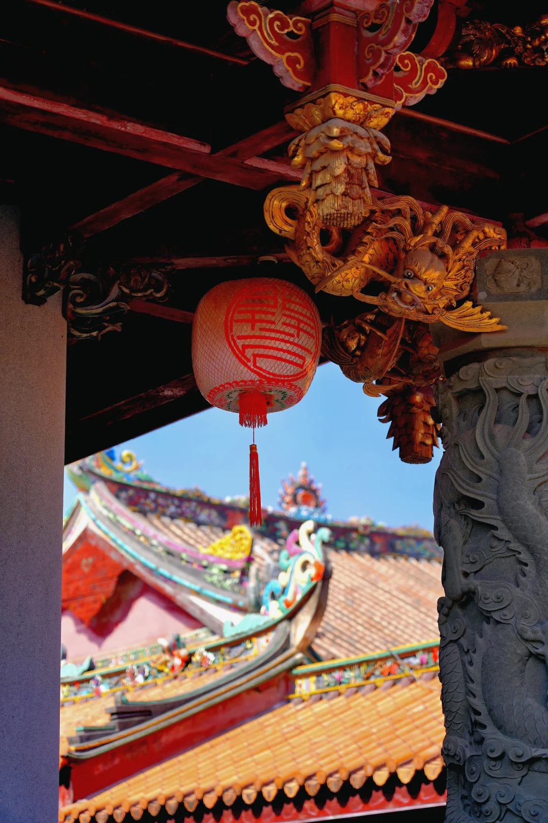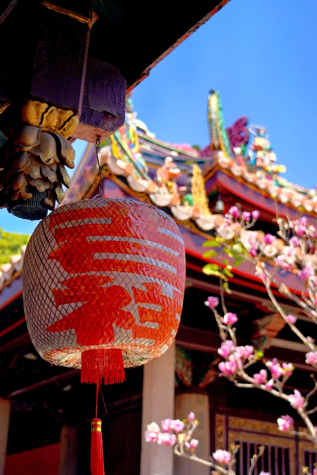 新年寺庙里的长廊挂上手工油纸灯笼,朱红微晕,墨迹温润。风过时,光影轻晃,洒在木柱上碎成暖意~~