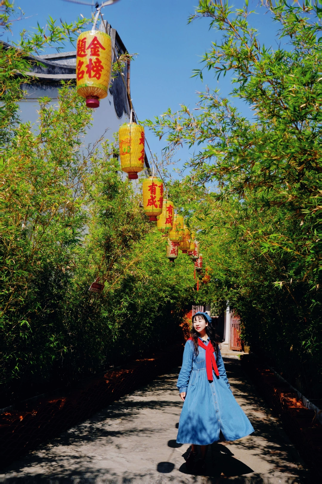 ③、开元寺最左边侧门进去,藏着一排竹林小径,小径间挂着竹编灯笼,每一盏上面都写着吉祥话,风一吹,光影在竹叶间晃动,似在将祝福送给你
