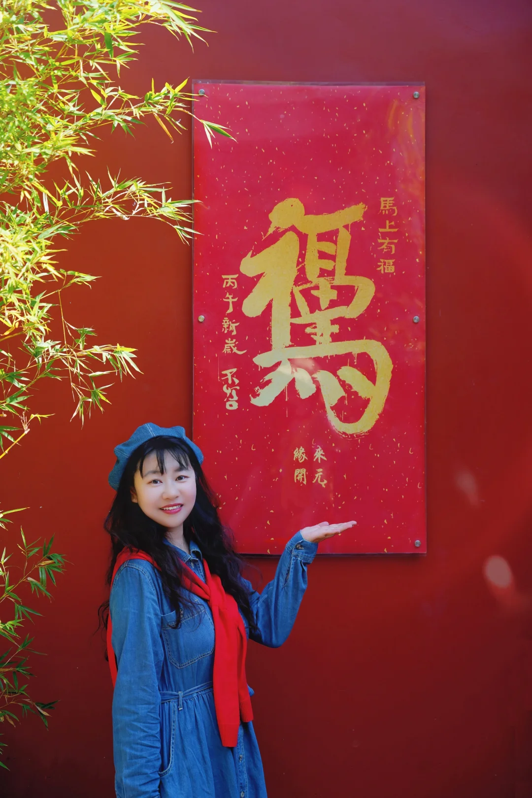 入门右边的墙上,贴着“马上有福”的红色字帖,合个影,讨个“马上有福”的好彩头