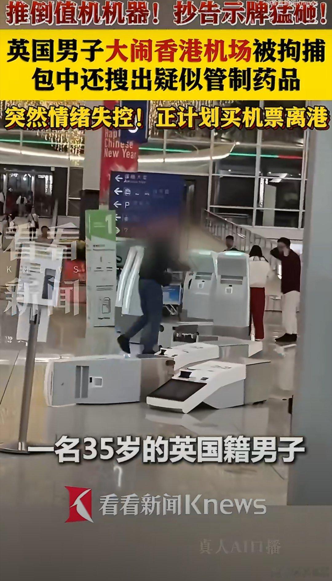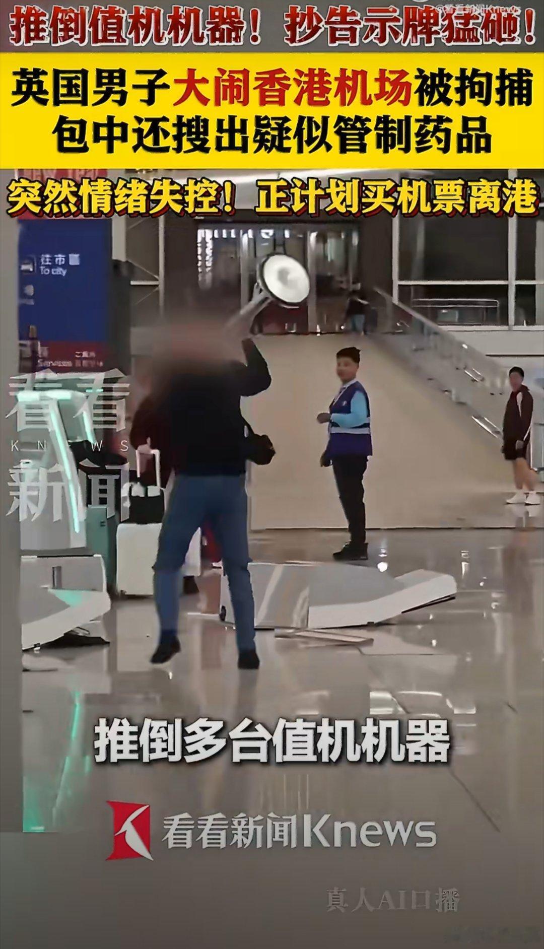 英国男子在香港机场公然打砸设备、扰乱公共秩序,性质恶劣。香港警方迅速依法控制并以刑事毁坏、非法持有管制药品将其拘捕,处置果断有力。香港是法治社会,法律面前人人平等,外籍人士同样没有特权。任何试图挑衅秩序、践踏规则的行为,都必将受到法律严惩。此事也再次表明,香港社会安定、执法严明,绝不允许任何人撒野闹事,维护法治底线,守护公共安全。英国男子打砸香港机场