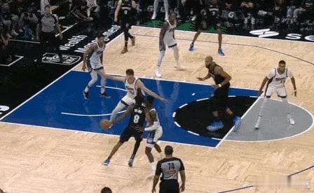 16、17、18海兰德示意队友拉开后面框持球单打阿丘瓦,连续胯下启动左路突破直杀篮下,佯装起身终结点飞阿丘瓦、吸引默里回收协防后找到外线空位的兰德尔。