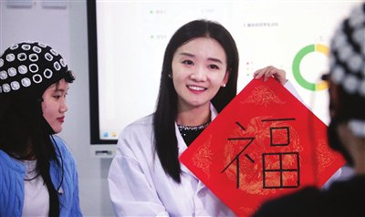 过年了,团队自主研制的“哪吒”多脑协同控制系统,用两位同学的脑电波,共同操控智能机械臂,拿着毛笔,合作写出的一个漂亮的“福”字。“这也是我今年春节准备送给家人的礼物。”于海情笑容灿烂地说。记者张立摄