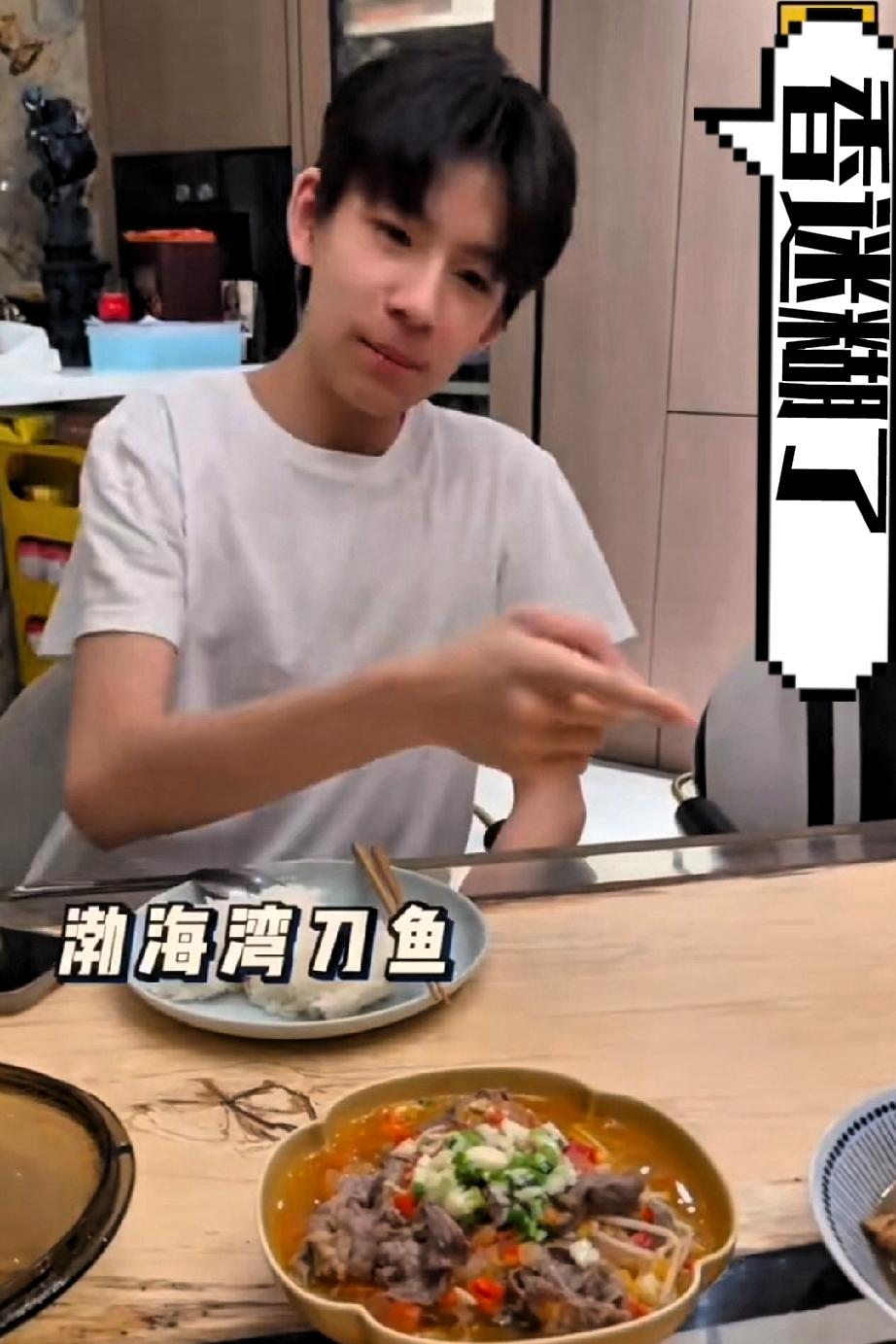 快到春节了,董洁为儿子顶顶做了两道拿手好菜,一个是红烧带鱼,一个是酸辣牛肉汤。董洁说这两道菜简直香迷糊了,她的儿子顶顶也已经长成高高瘦瘦的大小伙子了,还是和爸爸潘粤明长的不太像,妈妈董洁像的多一些。不过董洁也太节省了吧,年夜饭只做了两个菜,再怎么还不做十个八个菜吧!
