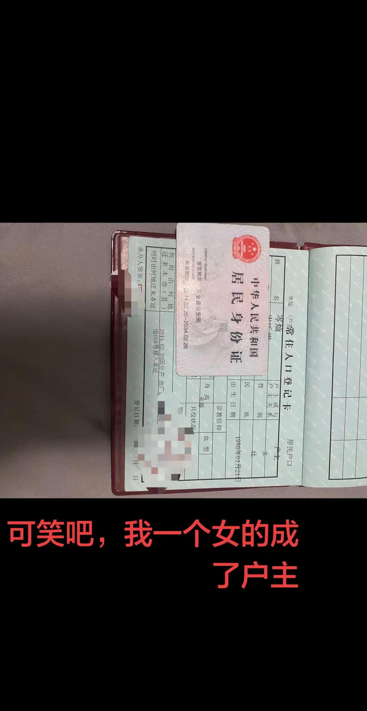 我不是谁的妻,也不是谁的媳,我是一家之主,一个人的户口簿,往后余生户主是我,成员