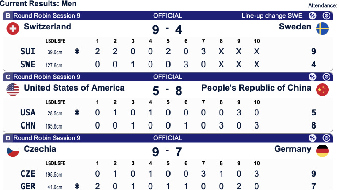 冰壶男子循环赛第九轮汇总:中国8:5美国,瑞士9:4瑞典