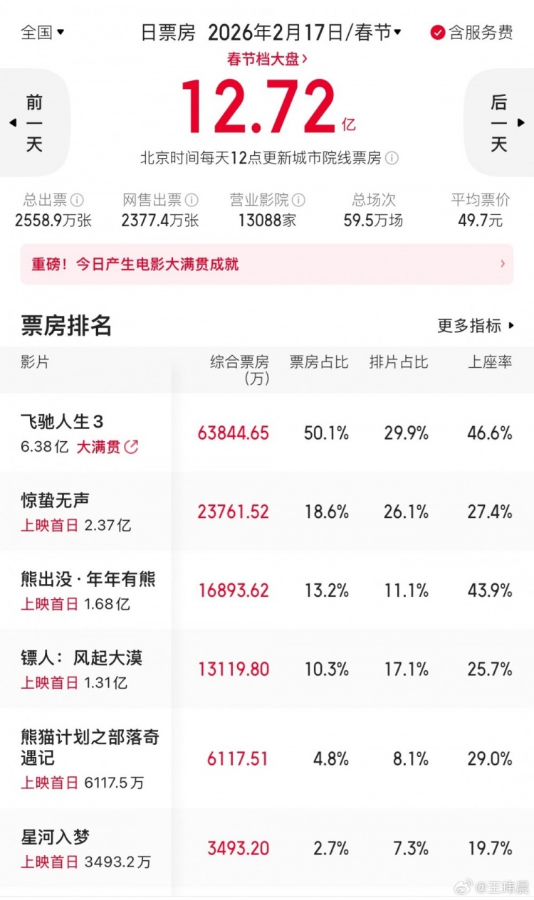 飞驰人生3春节档票房冠军没任何悬念了。