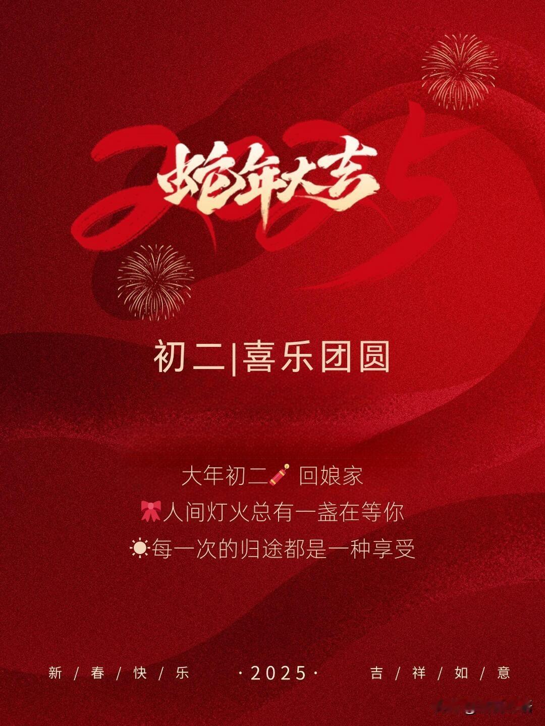 大年初二回娘家,这可是新年里女婿必备环节,备好接地气的拜年文案,发圈也合适,句句平实好懂,照着用就行! 1. 大年初二回娘家,爸妈笑开颜,幸福乐开花 2. 正月初二归宁日,带着幸福回娘家,阖家团圆喜洋洋 3. 初二回门,亲情最暖,一家人在一起,万事都顺意 4. 大年初二,回娘家唠家常,吃家宴,岁岁年年皆平安 5. 正月初二,带着祝福回娘家,爸妈安康,全家都幸福 6. 大年初二回娘家,一路欢喜,满心温暖,新年事事顺 7. 初二归宁,福气满满,娘家的烟火气,最抚凡人心 8. 大年初二,愿爸妈身体好,家人常相伴,新年多美好 其实过年的仪式感,从来都藏在家常的美好里。回娘家不用华丽的辞藻,朴实的祝福,最能戳中人心,愿大家初二归家,一路顺遂,团圆欢喜!