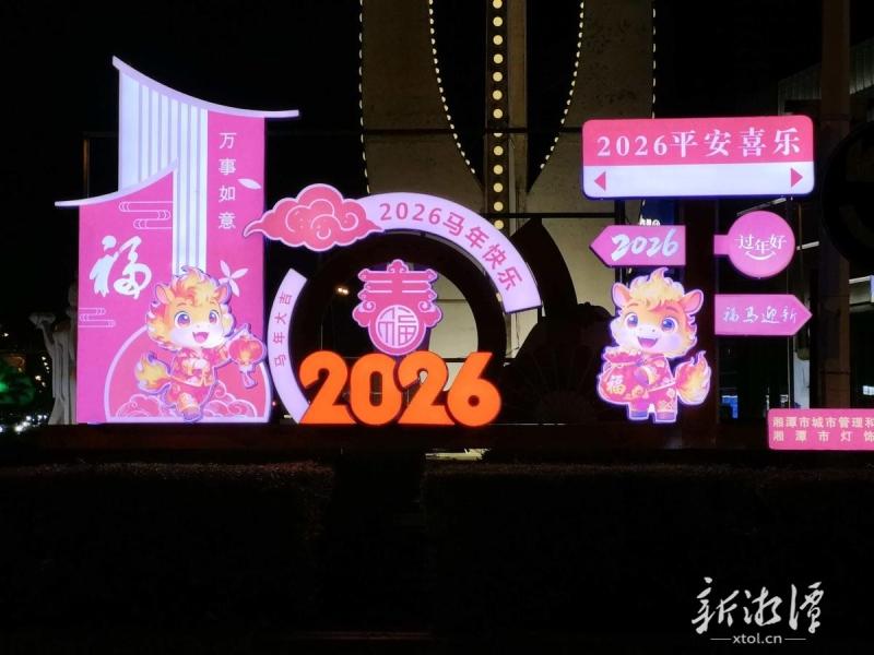 春节临近,年味渐浓。为营造喜庆祥和、温馨靓丽的节日氛围,提升城市颜值与市民幸福感,市城管执法局灯饰管理处精心部署、高效推进春节氛围营造工作,分别在湖湘路、双拥北路、一大桥、莲城大桥等路段悬挂春节主题LED灯箱;在金鹏东路(湘潭北站段)设置LED灯笼;在建设路口设置集马年生肖文化与传统吉祥元素深度融合主题亮化小品两套。