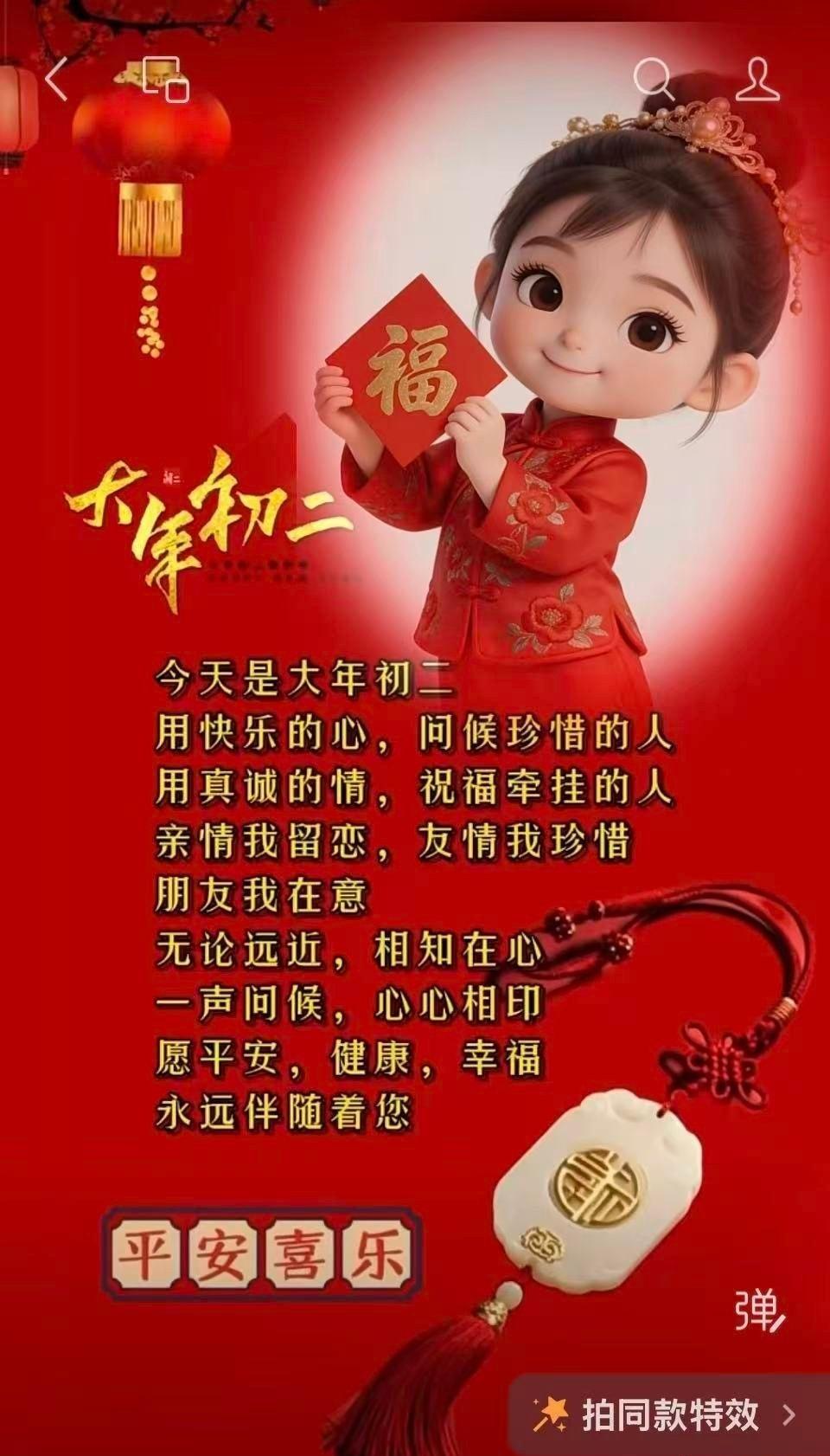 大年初一第一天, 过了初二是初三, 正月十五半个月, 腊月三十又一年。 快马加鞭,马不停蹄,农历新年到来眨眼间就过去了,时间就是督促我们不停地眨眼睛。拜年啦,新春快乐!