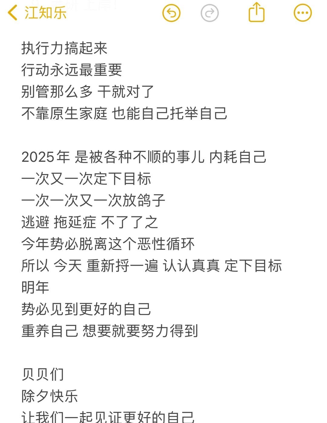 一位00年女孩 重启之托举自己人生计划 贝贝们 除夕快乐🎆 在此时此刻今年最后一天,坐在外边,回忆过去往往,随着鞭炮声🧨响起,闻着熟悉的味道,过去一年种种快乐 不开心 自由 内耗 逃避都要在此刻结束,新的一年,重新捋清自己的思路,既要重启 也要重新培养自己。 于是诞生我的2026年重启之重养自己人生计划! 我一直相信,不靠原生家庭,也能自己托举自己,想到什么就即刻行动,努力搞加油搞,最终总会实现,闲暇时间就喜欢什么就学习什么,未来人生这么长,一定会在某时某刻用到,那时候就从容淡定,而不是当下需要什么在去学什么,那即使遇到机遇贵人都很难短时间提升自己,展现自己。 今晚过后,等着吧,看我每日每周每月每季的培养自己,努力向未来前进! 重养一遍自己 我的2026 重启人生计划 朝着目标努力 人生重启按钮 重启自己的人生 花一年时间改变自己 考研倒计时 我一定上岸
