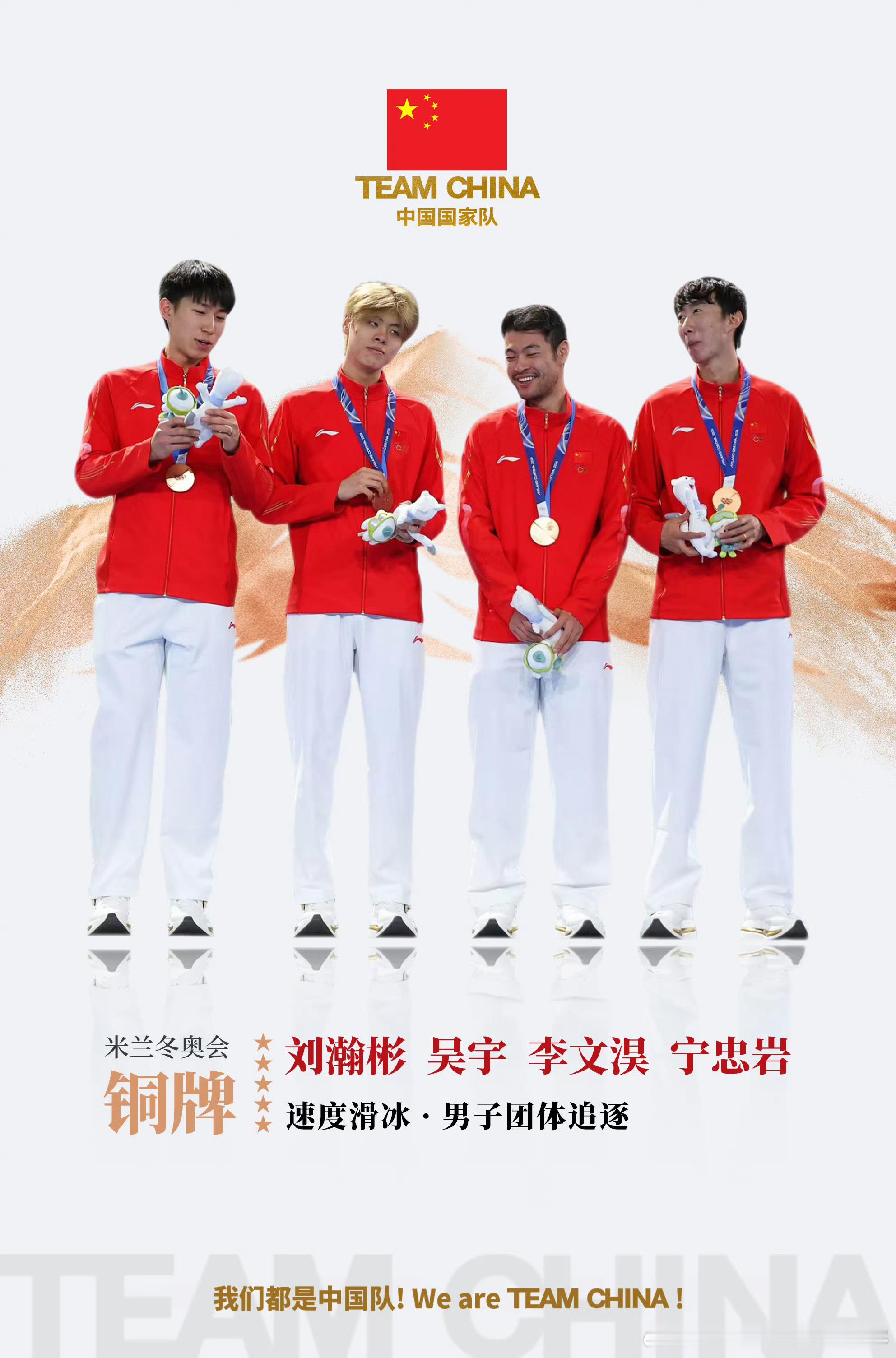 恭喜刘瀚彬、吴宇、李文淏、宁忠岩、收获速度滑冰 · 男子团体追逐铜牌!