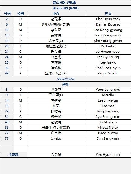直播吧02月18日讯北京时间今天18点,亚冠精英联赛东亚区第8轮上海海港vs蔚山HD,赛前首发阵容已经公布。