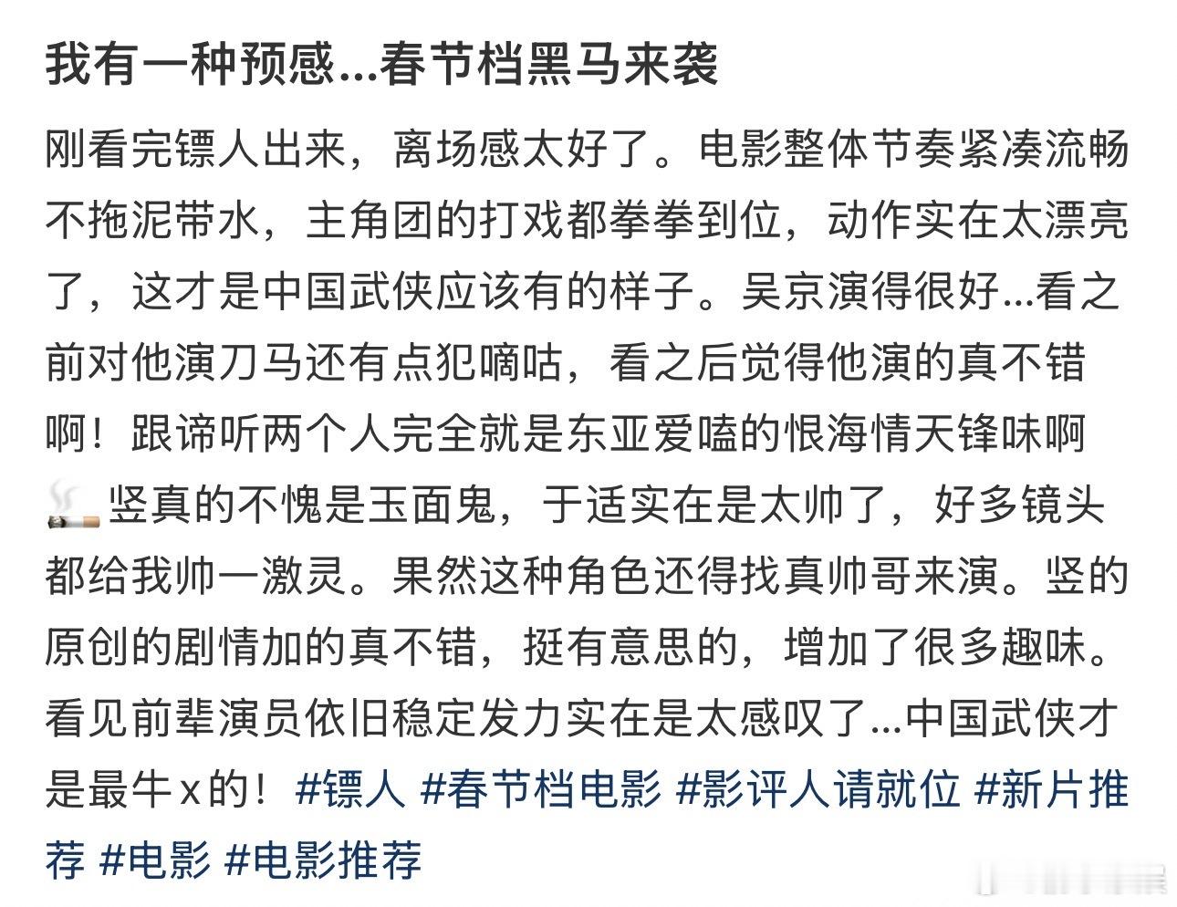镖人自来水申请加入护镖小队 护镖小队永不缺席👏!《镖人》全程高燃无槽点,看完直接变身死忠粉,二刷已安排,坐等更多人加入护镖行列!