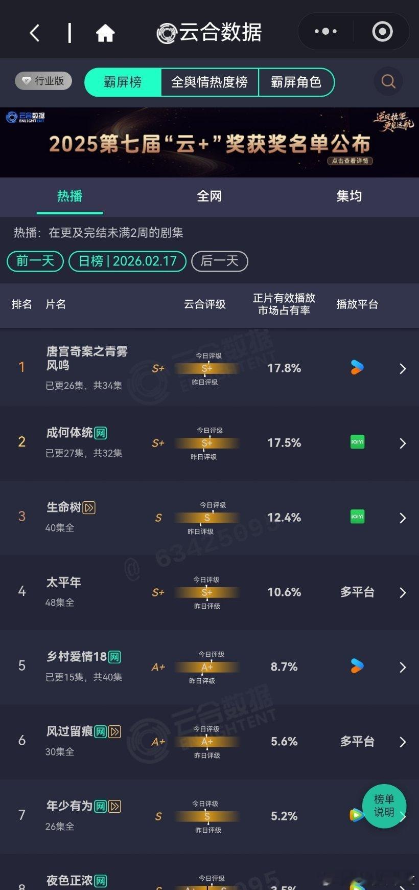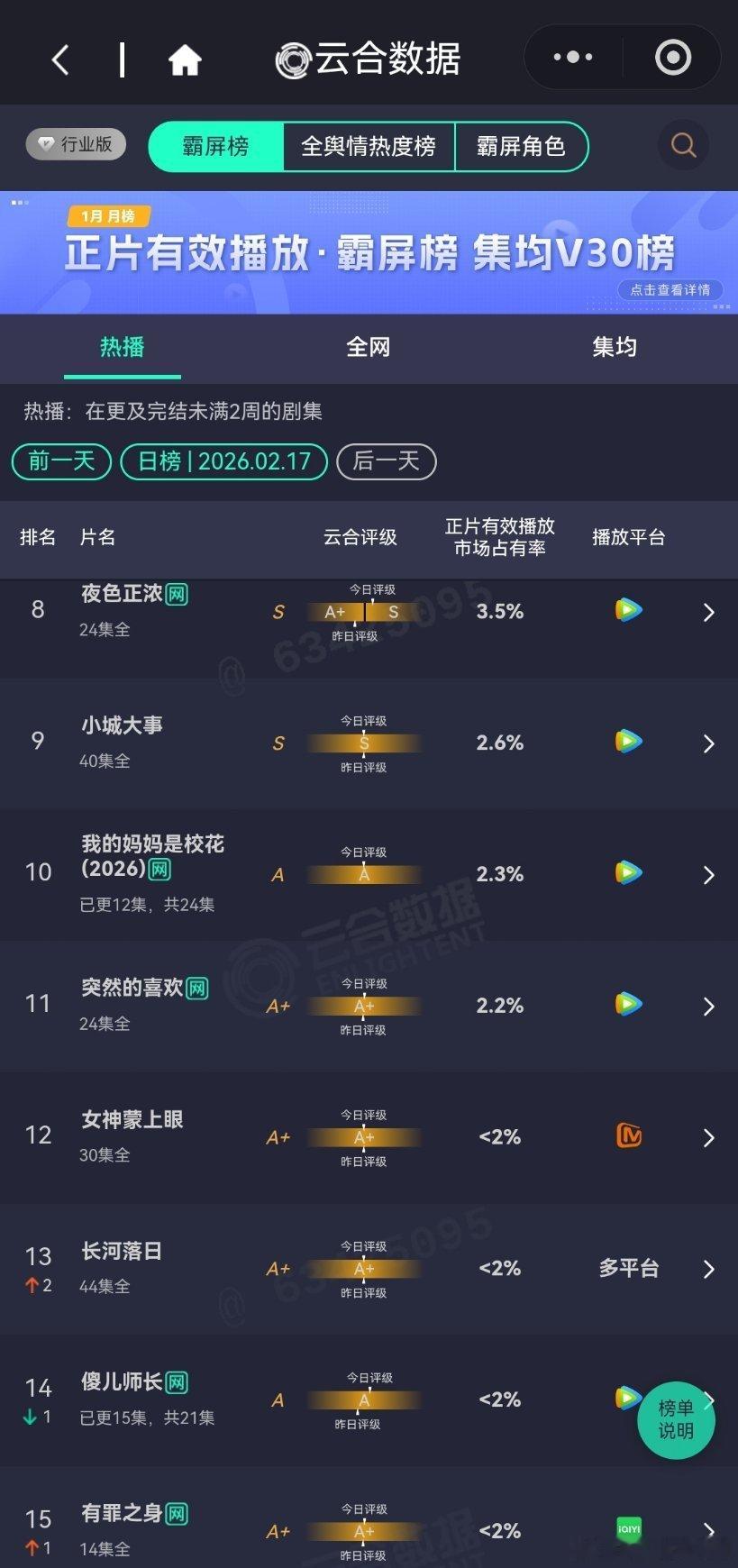 2026年第一天云合播放占比云合 看得出来春晚确实不怎么吸引人,因为比预期中看剧