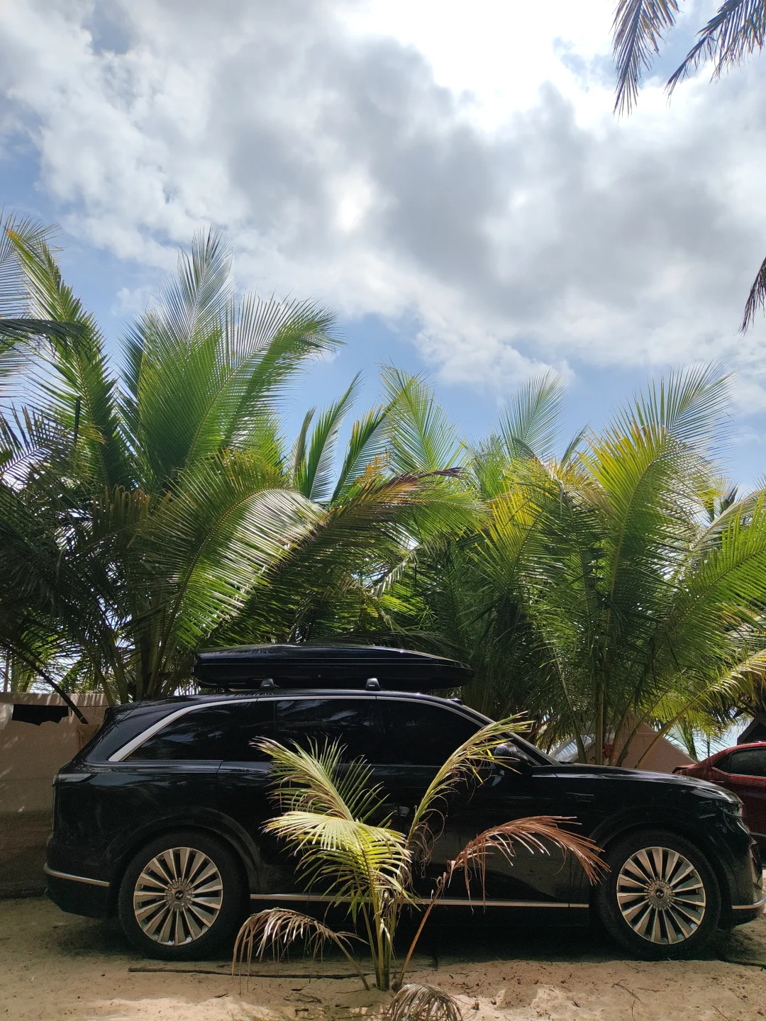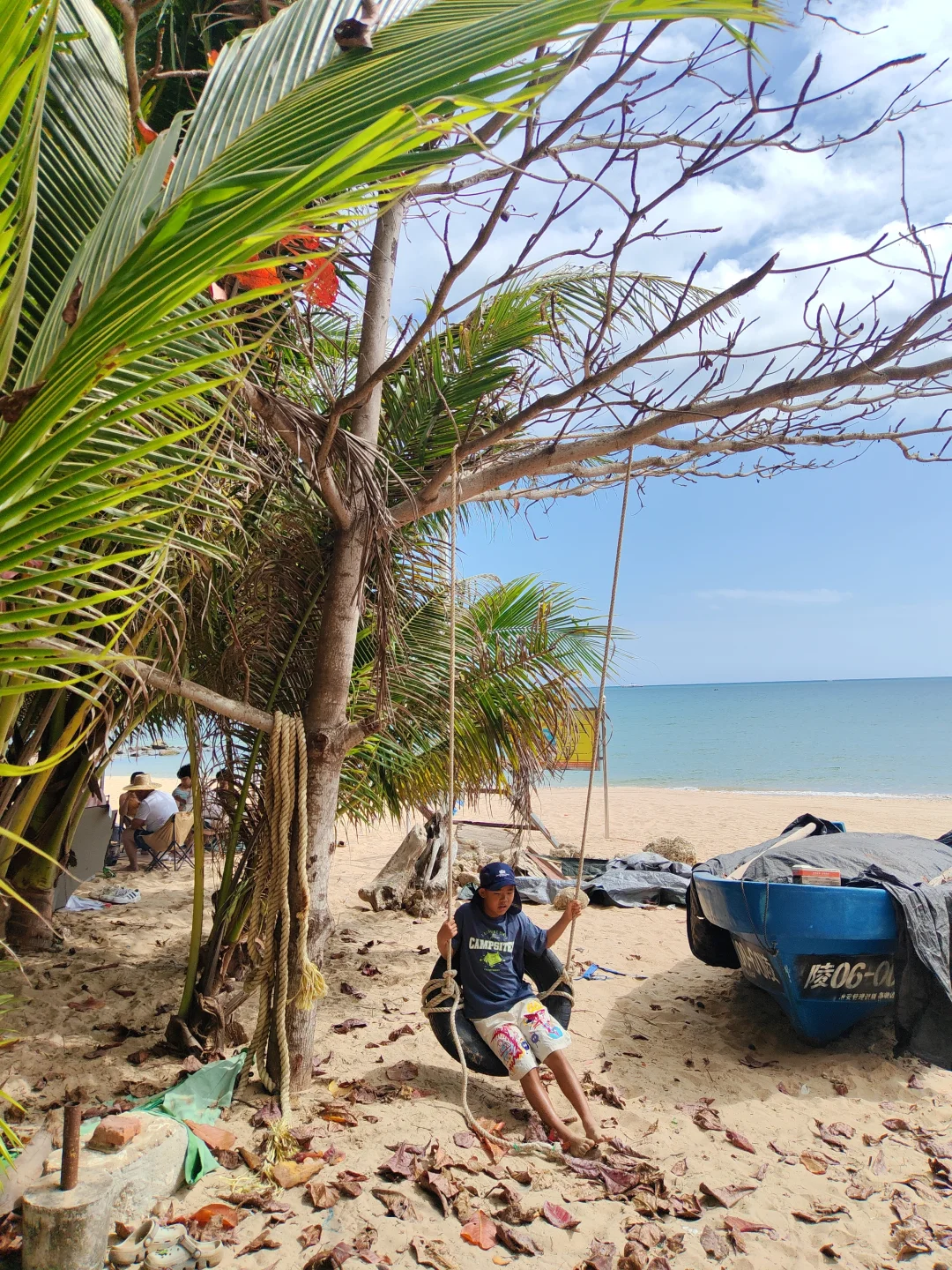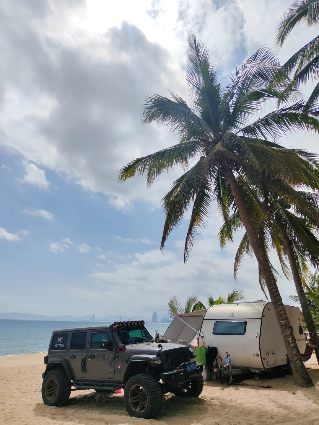 2026年大年初一 发现了一个可以露营的海边营地 椰子树下可以遮阳搭帐篷 有水有电有卫生间 沙滩走几步就到海里了 太阳照射下来海水透出了几个颜色 有点拥挤 提前约可能好些