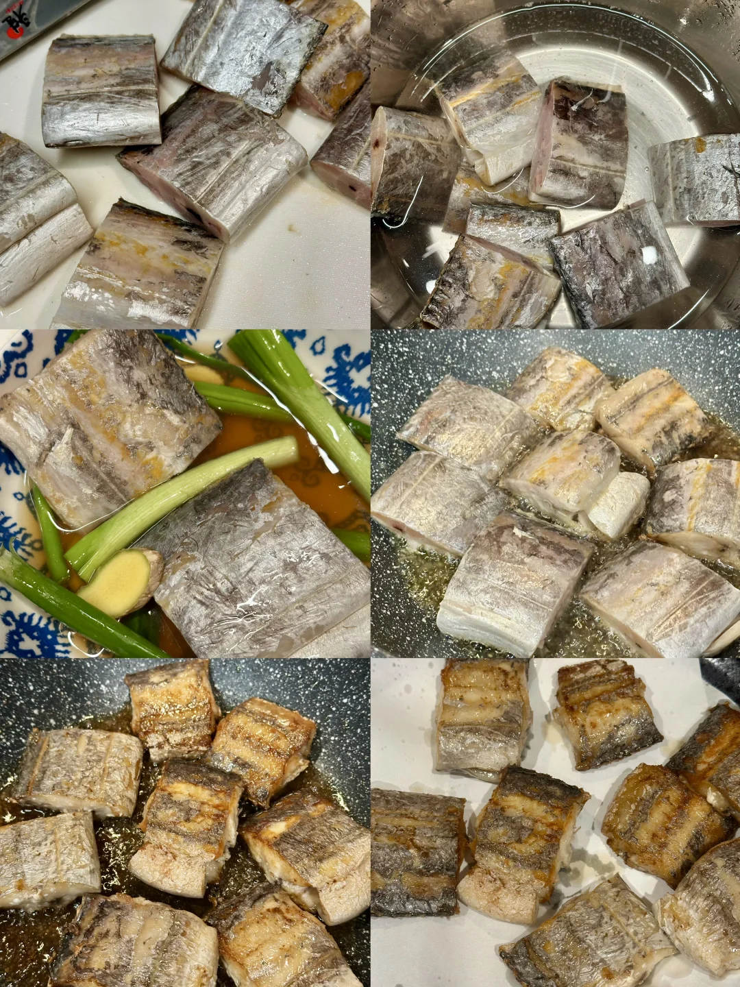 少许葱段,姜片在黄酒里抓捏一些,然后用带鱼稍微浸泡一下;